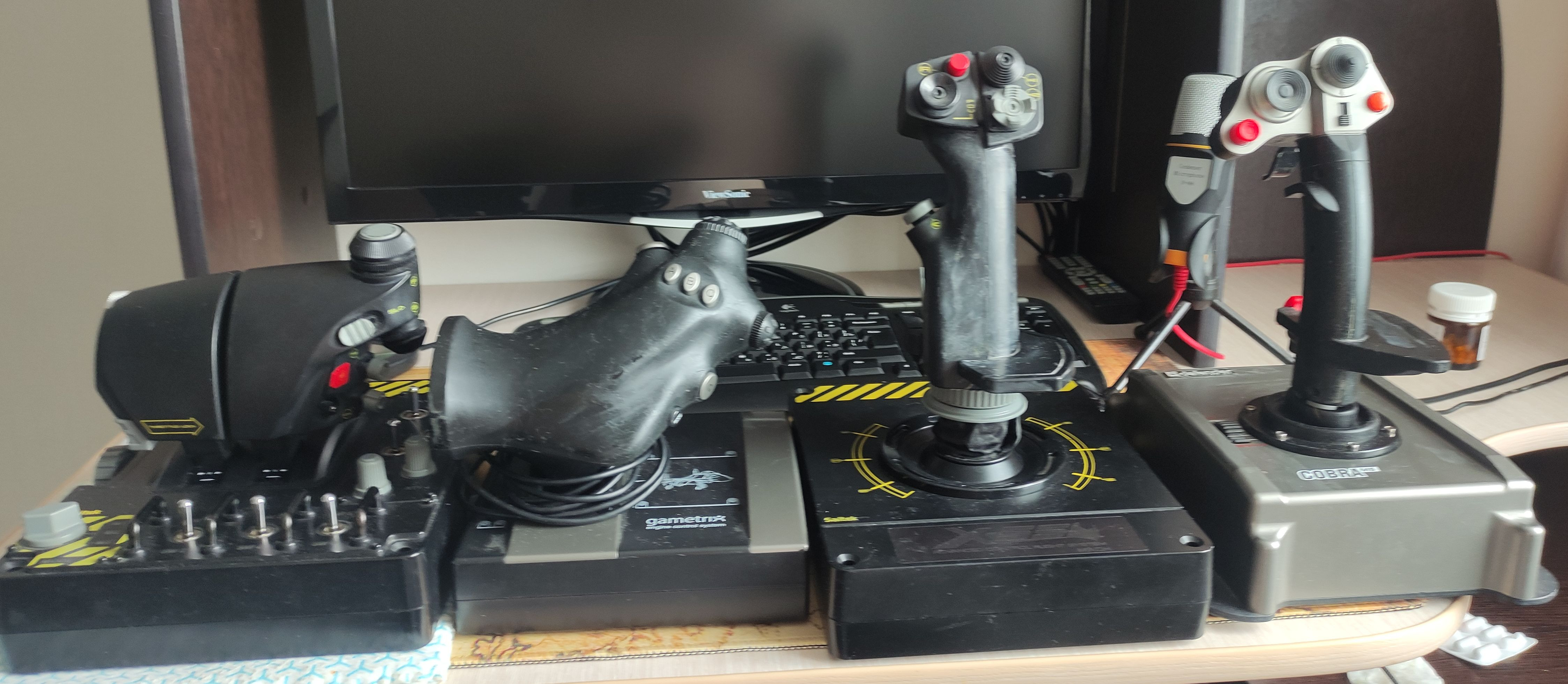 -DED-Alkozur Опубликовано: 12 сентября 2021 Опубликовано: 12 сентября 2021 Продам Джойстики Saitek X-55 в комплекте пружины жесткости. Cobra m5. Gametrix ECS. Все в рабочем состоянии. Cobra m5 твист переделан на датчик холла. Рус Saitek X-55 не юзаный, от времени покрытие на нем стало липнуть, протер ацетоном остались белые пятна. руд на Saitek X-55 почти не использовал. Дрожаний и скрипов на джойстиках нет. За все 10000 рублей. Если пересылка то за ваш счет.