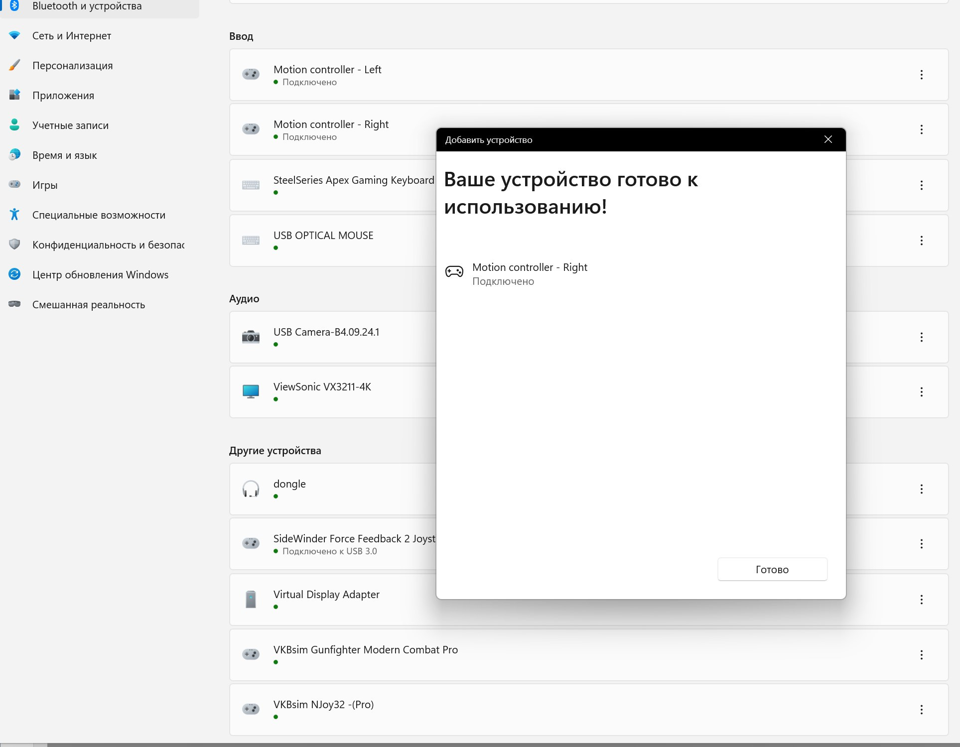 -DED-Ron Опубликовано: 18 сентября 2021 Опубликовано: 18 сентября 2021 36 минут назад, Rouslan сказал: Получается что шлем имеет BT, но его контроллер не отображается виндой чтоли. Вот к этому выводу, похоже, и я прихожу. Потому как при отключенном BT(на материнке точно нет), контроллеры за спиной (вне видимости камер) один хер отслеживаются и работают. Иначе как отслеживается нажатие и министики? Различие во вкладке HID при вкл/откл ВТ только в новых двух устройствах ВТ. Само собой при подключении ВТ 2 контроллера появляются при нажатии кнопок согласования. Короче, информации уже под завязку, ну почти как на фото :). 2