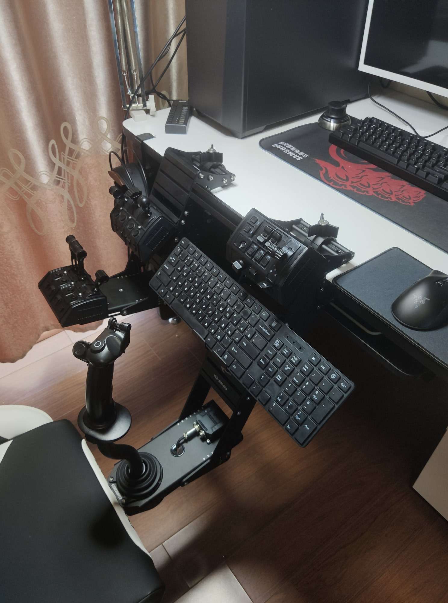 NetHunter Опубликовано: 21 февраля 2024 Опубликовано: 21 февраля 2024 (изменено) VictorUs, cпасибо за совет! Джойстик Gladiator NXT EVO SCG Premium под правую руку благополучно приобретен, осталось определиться с конфигурацией модулей THQ и SEM. Два варианта для установки на обыкновенный компьютерный стол (с выдвижной клавиатурой): 1. Три в ряд 2. THQ и SEM на кронштейне MFH (на фото THQ с ручкой-бочкой, но будет классический трехосевой THQ) Какие тут есть За и против, подводные камни? Всю голову себе уже сломал... Три в ряд привлекает своей эргономичностью: все органы управления на одинаковом удалении от рук. Вариант с кронштейном нравится большей похожестью в плане кабинного оборудования реального самолета. Помогите плиз определиться.. PS мне лично странно, что комплект с ручкой-бочкой в продаже (за 17671 руб.), а такого же комплекта с обыкновенным трехосевым THQ не предусмотрено. При этом снять ручку-бочку и докупить отдельно пластиковые рукоятки-наболдашники, чтобы задействовать все три оси, не получиться (они тупо не продаются), приходится набирать модули и кронштейн по отдельности - выходит дороже на 4 с лишним тысячи..(( Изменено 21 февраля 2024 пользователем NetHunter