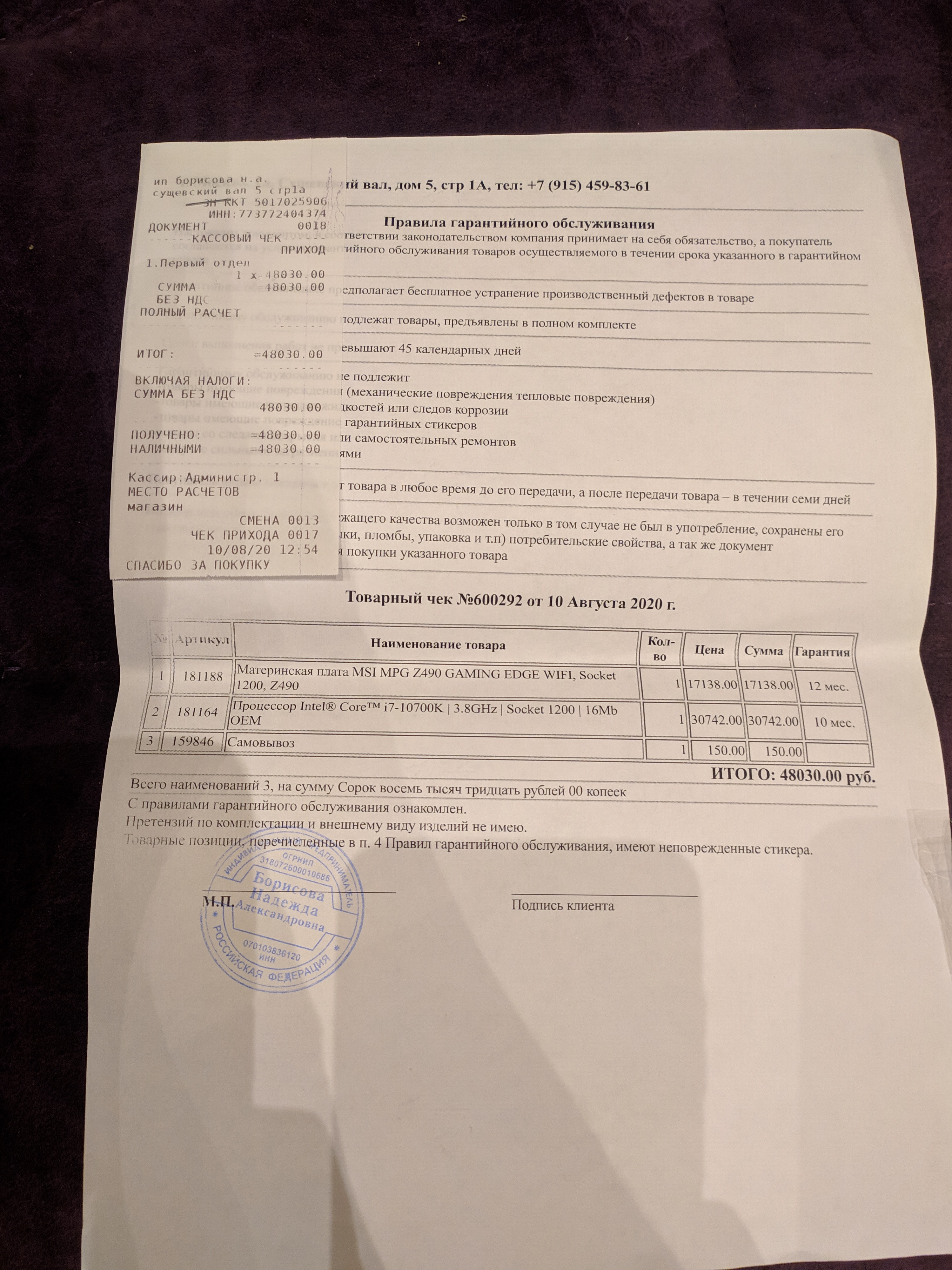 -SCS-Kaplan Опубликовано: 7 ноября 2021 Автор Опубликовано: 7 ноября 2021 (изменено) Бестактности нет,это нормально. ниже картинка из объявления Прежнее брал в Хперт компутерс на Савеловском Новое я брал в Онлайн-трейд проц 59к матьMSI 17к но столкнулся с 2мя проблемами - мать самая простая с ДДР-4 ( у меня 64гг ддр4 2х32 (меньше в моей работе нельзя, лучше если вообще 128 гг было бы) ,а ддр5 с такими параметрами просто нет в продаже...как только память появится-эту материнку заменю на поддерживающую ддр5 . Так вот из-за простоты материнки-в комплекте у нее не было буклета(книжки) по эксплуатации - качал с офф сайта. - Моя трехмоторная СВО от Фрактал Дизайн не садится плотно на новый сокет (надо ждать переходника-который когда будет(ответил производитель)неизвестно) например в тесте синебенч32 температура через минуту уперлась в 99 градусов и тест я прекратил(должна быть не более 75-80) . Я вышел из положения проложив медную прокладку между пяткой радиатора и процом (новый проц на 0,8 мм ниже чем прежние модели). сейчас темп проца в офисных приложениях 29град..в работе до 50-55..в любых играх (ну там видюха тащит с 67-68 градусов)около 36 градусов. Изменено 7 ноября 2021 пользователем -SCS-Kaplan 1