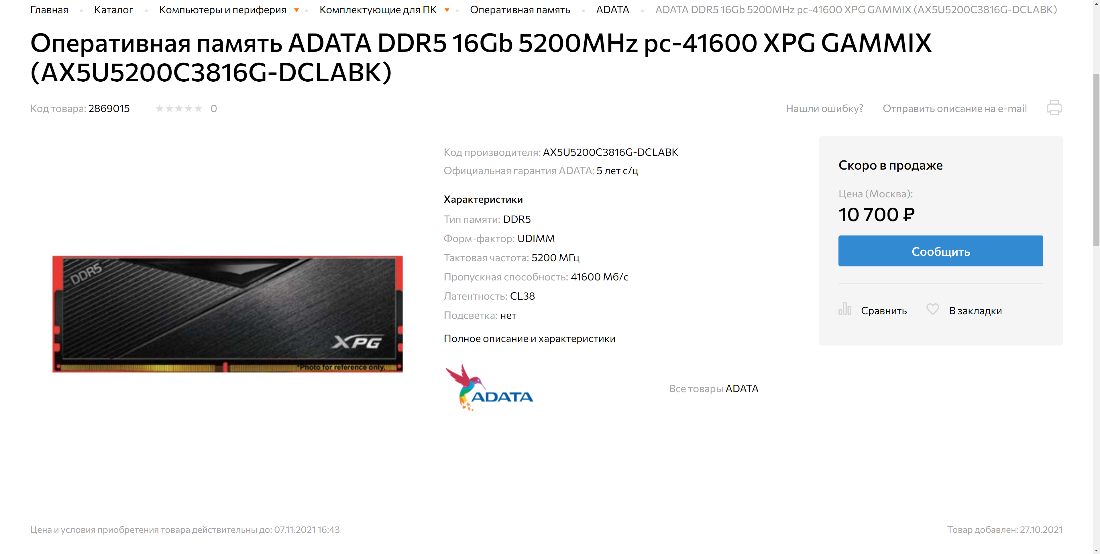 -SCS-Kaplan Опубликовано: 7 ноября 2021 Автор Опубликовано: 7 ноября 2021 АВР-158 ,вы невнимательно читали, но ничего страшного в этом нет, вы нашлито,что вам нужно. Памяти ДДР5,которая мне нужна-быстрая(а не этот "пони" на 5200) и объемная пока не представлена на российском рынке,да и на западном тоже