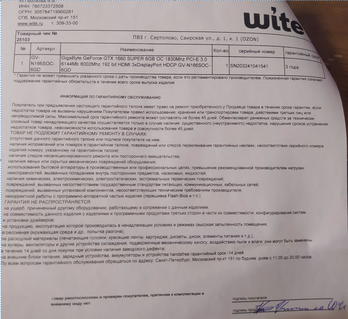ShtrafAP_CRUEL Опубликовано: 16 декабря 2021 Опубликовано: 16 декабря 2021 (изменено) Собственно, в продаже. GeForce GTX 1660 SUPER OC 6G (GV-N166SOC-6GD) 50 000 (доставка СДЭК включена в стоимость) Куплена 13-10-2020 (Wite) Гарантия 3 года Территориально: Север СПб/ЛО Скрытый текст Скрытый текст Изменено 16 декабря 2021 пользователем ShtrafAP_CRUEL