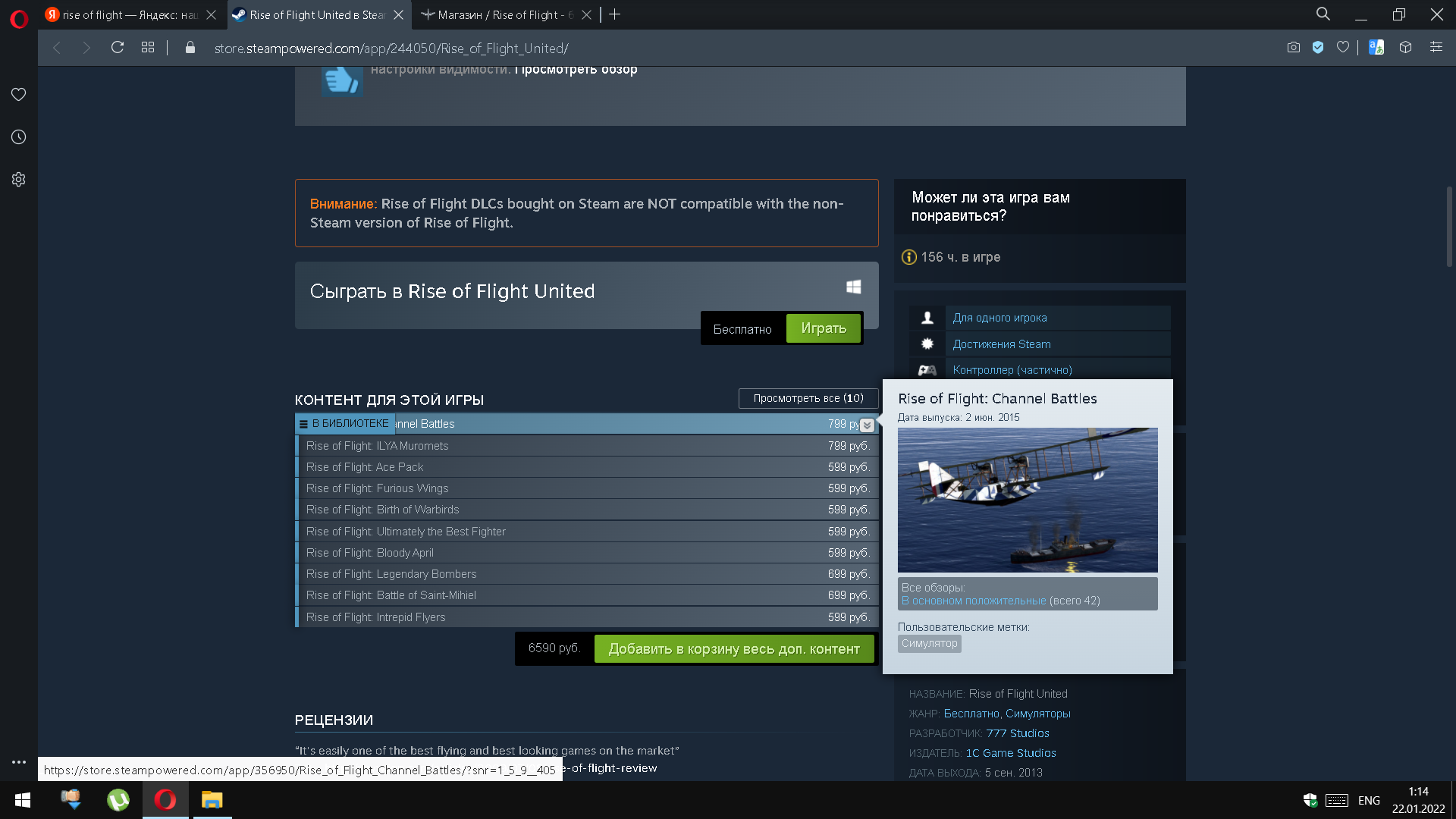 FilMit Опубликовано: 16 января 2022 Опубликовано: 16 января 2022 Ув.разработчики, уже писал об этом, и повторюсь. У вас в магазине сейчас черт ногу сломит! Ну неужели нельзя было сделать, как в РоФе? Вот честно, лучше б в Стиме все покупал, там хотя бы видно, какой у тебя контент уже есть, а что надо докупить. В Стиме кстати парадокс, в библиотеке БзС, ну это понятно, и Битва за Москву, с коллекционными самолетами БзМ. БзМ Продаётся без ключа для активации в Steam. Почему у меня так в Стиме, не понятно. 1