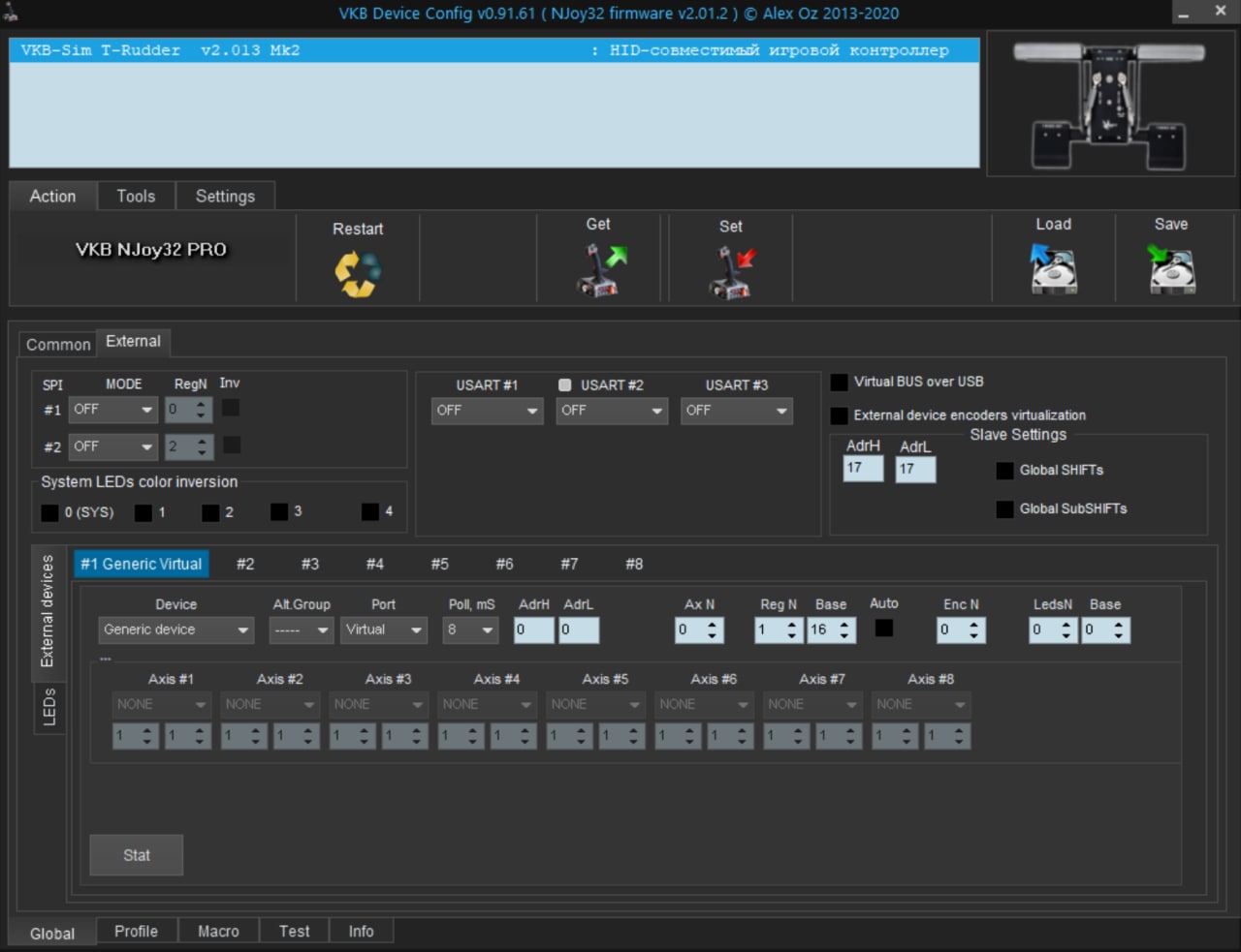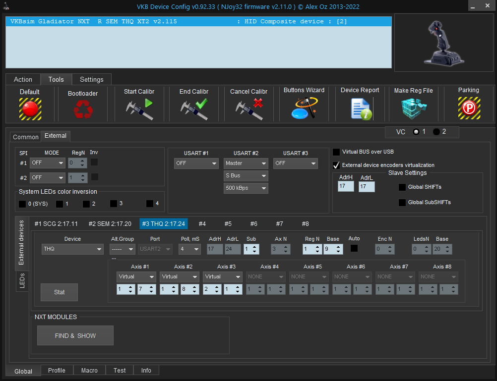 Captain_Horn Опубликовано: 29 сентября 2022 Опубликовано: 29 сентября 2022 56 минут назад, -DED-Ron сказал: Используйте более новый конфигуратор (возможно и прошивку для GNX_USB Controller_2_11B), сбросьте в Default и потом сконфигурируйте кнопкой Find&AutoConfig, не зажимая никаких кнопок перед этим. Спасибо устройство определилось на новом конфигураторе. Правда, не могу найти кнопку "Find&AutoConfig". Конфигуратор сам предложил калибровку и настройку.