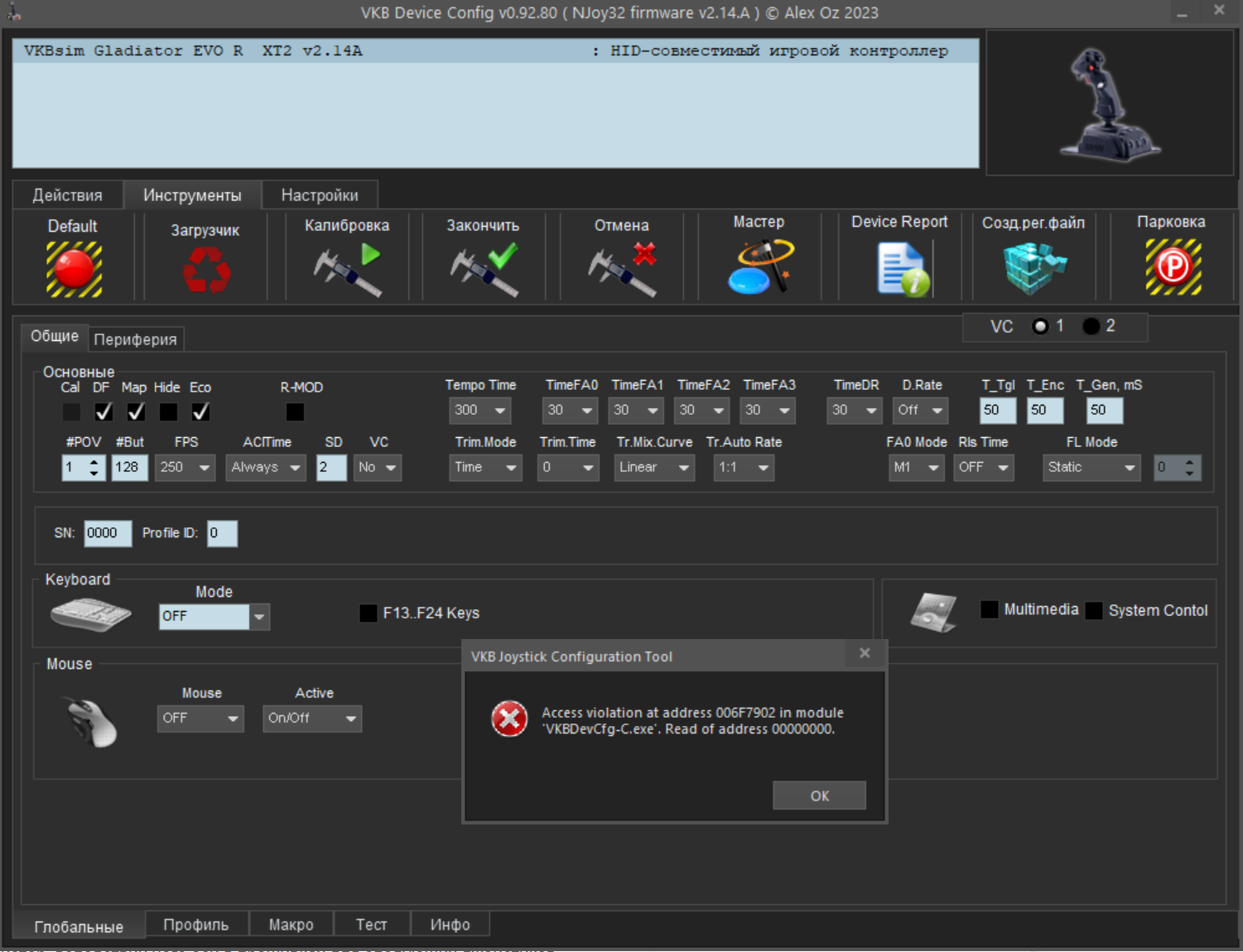 genrix66 Опубликовано: 22 мая 2023 Опубликовано: 22 мая 2023 Собран следующий сетап:"Модуль GNX-THQ" + Ручка WWII THQ + Модуль GNX SEM. Config V0.92.80; N-Bootloader V2.01; заводская прошивка VKBSim NXT SEM THQ XT v2.108. Поставил прошивку _GNX_USB_Conroller_v2.14_A.vkb, другие прошивки не ставились. После прошивки комп перестал видеть девайс. При подключении кратко моргнет синим диод и всё на этом, больше индикатор не светит, девайс не определяется. В чём может быть проблема?