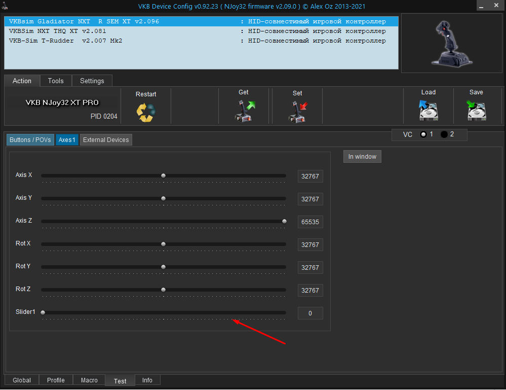maksiLo Опубликовано: 10 мая 2022 Опубликовано: 10 мая 2022 (изменено) Добрый день! Подскажите пожалуйста можно ли как то настроить для MFS2020 среднее положение шасси (нужно для Boeing 737)? Мой конфиг THQ (подключен отдельно ) и SEM+Gladiator NXT (отдельно) Сейчас переключатель шасси на блоке SEM настроен как ось (сделал это по обучающему видео на канале VKB), по другому они не заработали. В игре MFS2020 в настройках среднее положение никак не определяется. Так же заметил в настройках VKBconfig на вкладке Test что в среднем положении ось шумит немного и значения меняются постоянно, хотя я делал калибровку. Профиль настроек прикрепил, буду благодарен за помощь. VKB NJoy32 XT PRO profile 1.zip 20 минут назад, maksiLo сказал: Добрый день! Подскажите пожалуйста можно ли как то настроить для MFS2020 среднее положение шасси (нужно для Boeing 737)? Мой конфиг THQ (подключен отдельно ) и SEM+Gladiator NXT (отдельно) Сейчас переключатель шасси на блоке SEM настроен как ось (сделал это по обучающему видео на канале VKB), по другому они не заработали. В игре MFS2020 в настройках среднее положение никак не определяется. Так же заметил в настройках VKBconfig на вкладке Test что в среднем положении ось шумит немного и значения меняются постоянно, хотя я делал калибровку. Профиль настроек прикрепил, буду благодарен за помощь. VKB NJoy32 XT PRO profile 1.zip 2 \u041a\u0431 · 0 скачиваний Landing Gear Detend Block только я не убирал как показано на видео. Мне просто нужно чтобы можно было назначить каждое положение шасси, без осей. Изменено 10 мая 2022 пользователем maksiLo