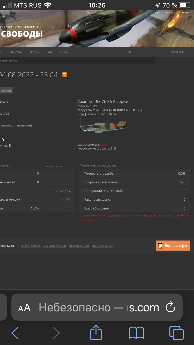 Сегодня на Либерти на карте Вязьма 43г был сбит турелью Ме-410, в статистике ник пилота не отразился, самое интересное , что оружие на моем Яке при атаке на « новинку» не работало. Отсюда несколько вопросов:1943г и Ме410, разрабы тестируют новинку в онлайне или это баг игры? Записанного трека к сожалению нет, только скрины статистики.