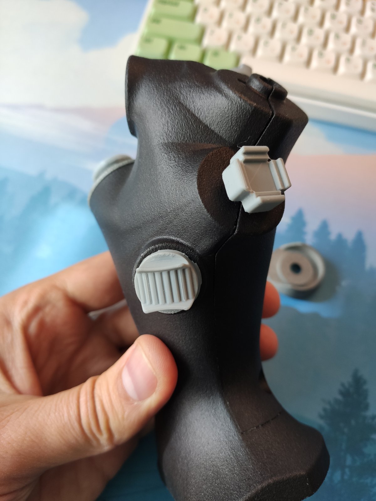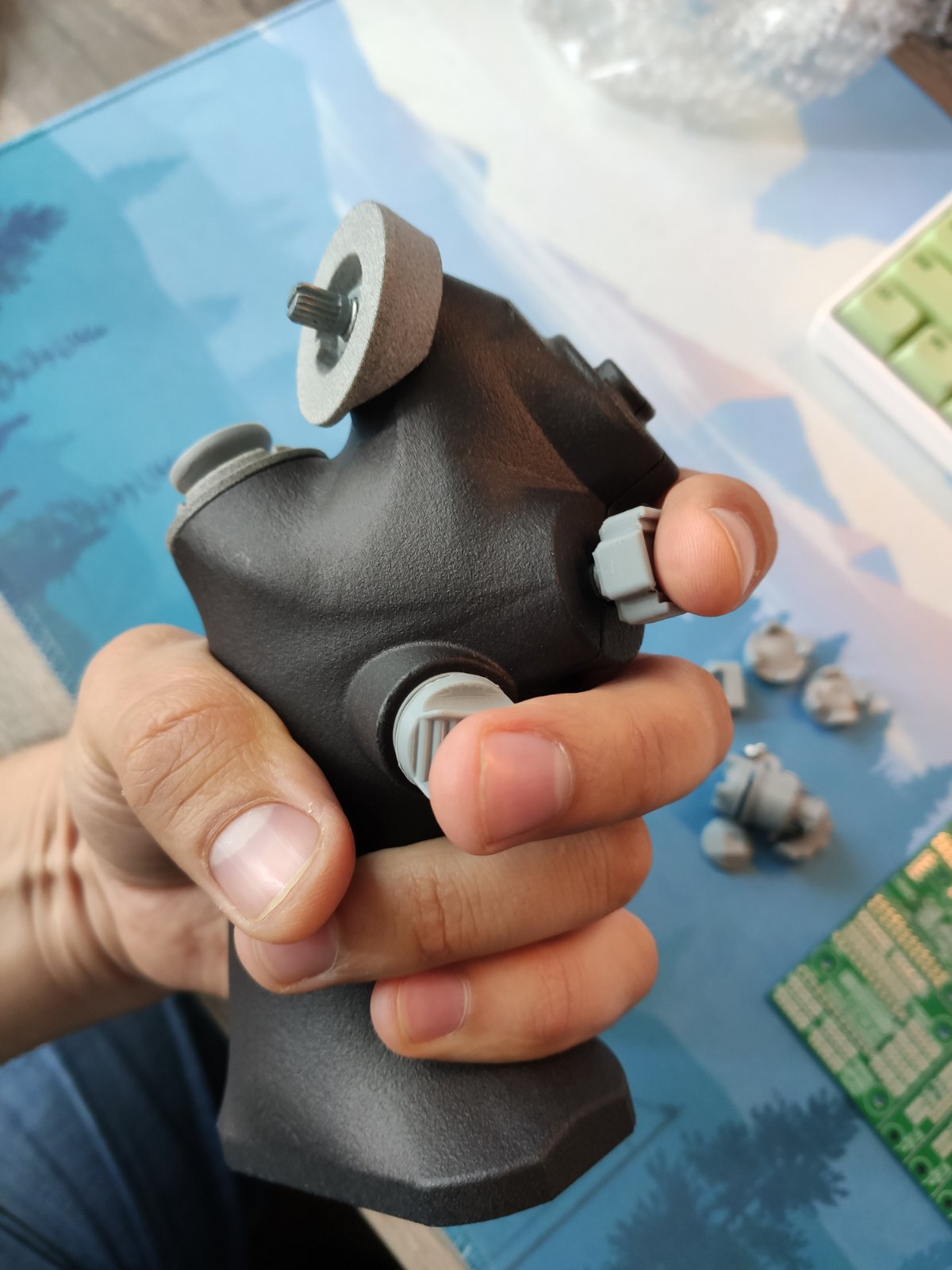 Krysnic Опубликовано: 6 сентября 2022 Опубликовано: 6 сентября 2022 Ручка(разработал Jonah Tsai) напечатанная по технологии MJF материал нейлон. На ручке имеются посадочные места под: 4 хатки, два потенциометра/энкодера, один министик. В комплекте несколько распечатанных хаток, печатная плата от capitanblood. Цена 4500р. плюс стоимость доставки.