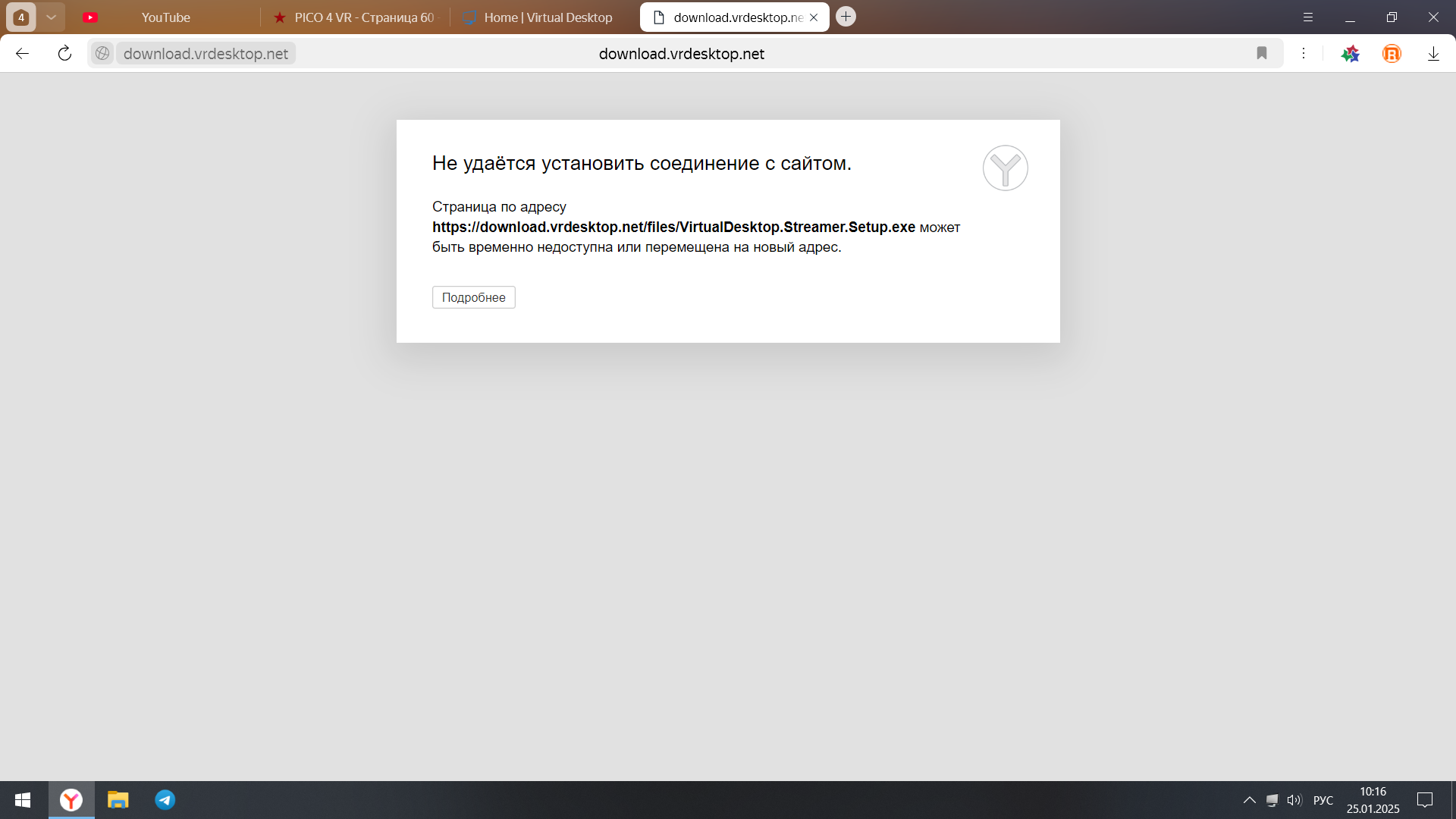 Akademik Опубликовано: 24 января Опубликовано: 24 января 22 минуты назад, ZTOV сказал: А что за прикол?ВД куплено,а скачать не могу версию на ПК. ВПН нужен? Нормально открываются Home | Virtual Desktop