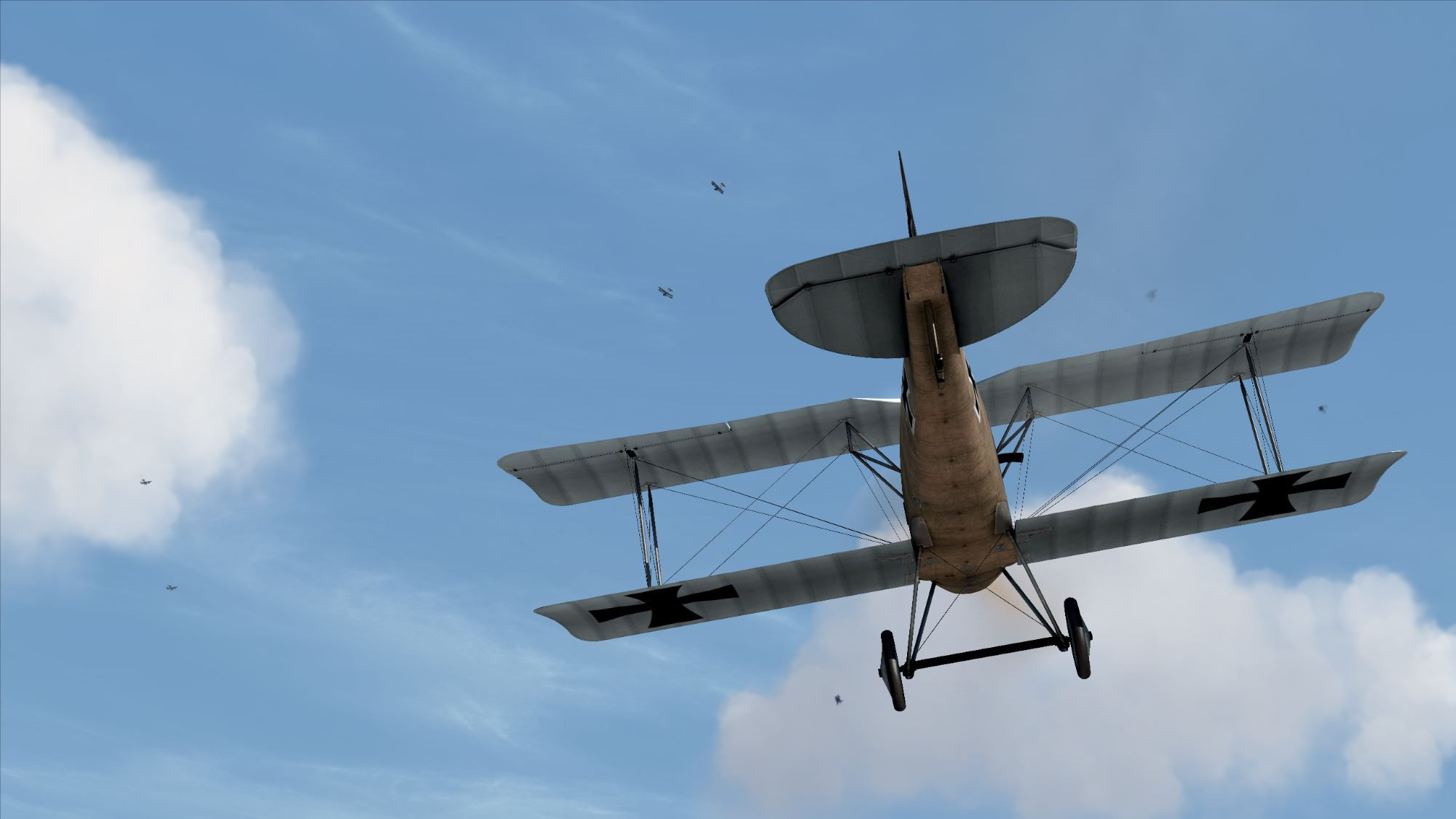 Ebot Опубликовано: 23 февраля 2024 Автор Опубликовано: 23 февраля 2024 Продолжение карьеры Бортового стрелка (иногда и пилота ) Otto von Grevenha на самолете DFW C.V ( Эскадрилья AFA 235) ... "Нештатная ситуация" 77-ый боевой вылет на бомбардировку склада. Наконец то я понял как правильно сажать этот чертов DFW C.V. (а еще экономить топливо , чтобы летать на дальние расстояния ) Запись из рапорта: 25 Января 1917 Отказал бомбовый прицел. Бомбометание пришлось выполнять с бреющего полета. Все цели поражены. В строю: 145 дней Как обычно , генерал Генератор выдал что-то невнятное. Однако, как известно - приказы не обсуждаются. Летим! Уже поднявшись на заданную высоту, было обнаружено что бомбовый прицел не работает. И показывает какую то дичь. Сперва была даже мысль, покинуть строй и вернуться на базу. Однако вспомнив гневное лицо командира Эскадрильи, решил продолжить полет Поскольку в этом вылете, я являлся ведущим группы, и понимая, каким образом будут сброшены бомбы (поскольку прицел не работает), было принято решение - отправить их по адскому маршруту генерала Генератора. В это раз я прибрал дроссель, что позволило ощутимо сэкономить топливо. Цель обнаружена. Выходим на боевой. Бомбы пошли! Миссия выполнена! Летим домой... ... Боты кстати тоже, выбрались наконец из лабиринта и достигли цели. Однако словили глюк и начали бесконечно нарезать круги над целью. А еще , в этом полете, почему то пропал звук на внешних видах. И вот я дома! целый, невредимый.. и довольный. На аэродроме меня уже ожидала новость о переводе в другую эскадрилью AF(A) 225. Что мня безусловно расстроило, ведь не хотелось расставаться с боевыми товарищами. Но выбора особо не нет. Но! нет худа без "Бобра", и похоже генератор Карьеры починился сам собой. Я наконец то увидел нормальные полетные маршруты и аэродром посадки