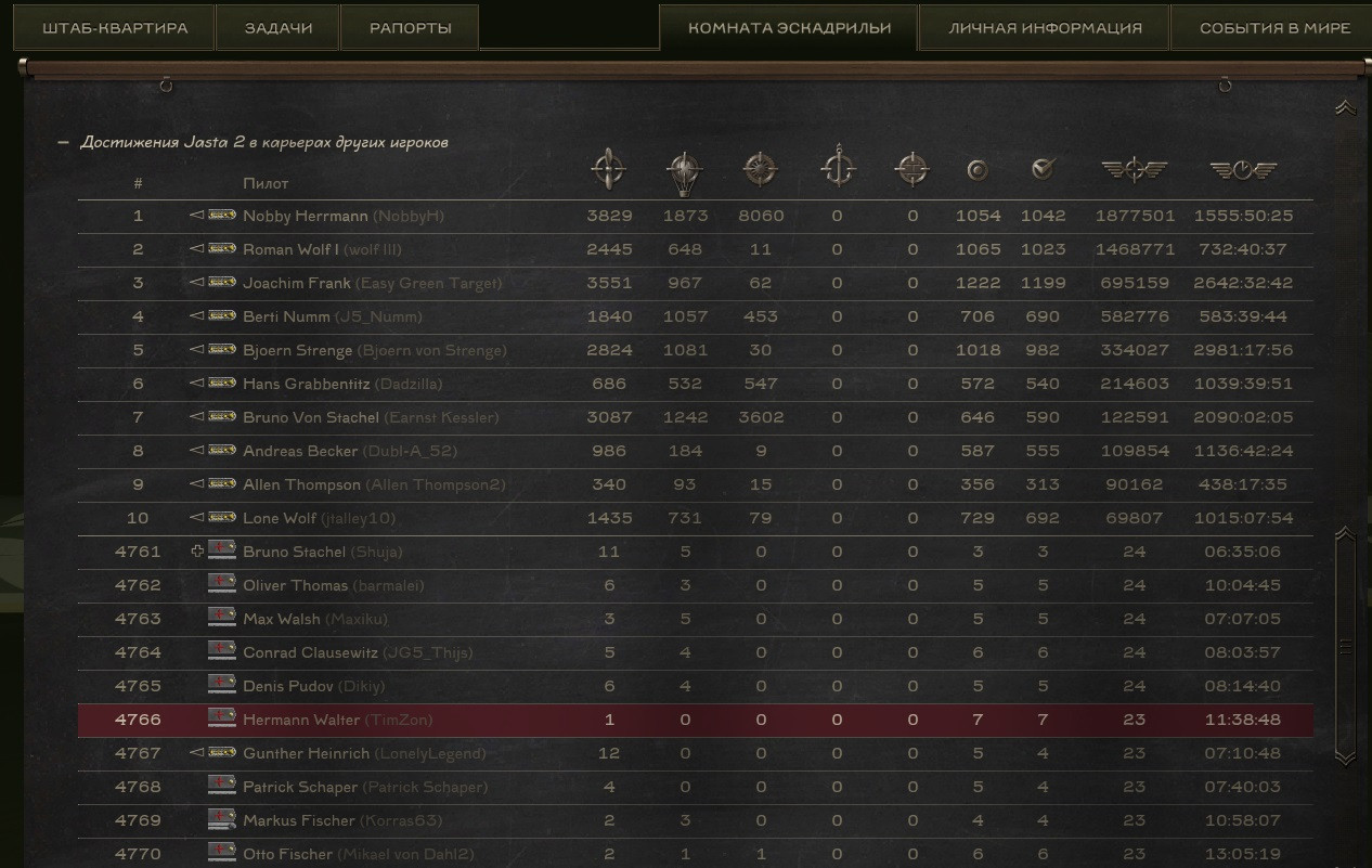 Ebot Опубликовано: 9 июля 2024 Автор Опубликовано: 9 июля 2024 06.07.2024 в 08:51, TimZon сказал: 1 - здесь все верно 2 - здесь неверная статистика, меняется произвольным образом при входе в игру. Так это две разные статистики. Одна локальная , в рамках эскадрильи. Вторая. Мировая - в рамках всех игроков.