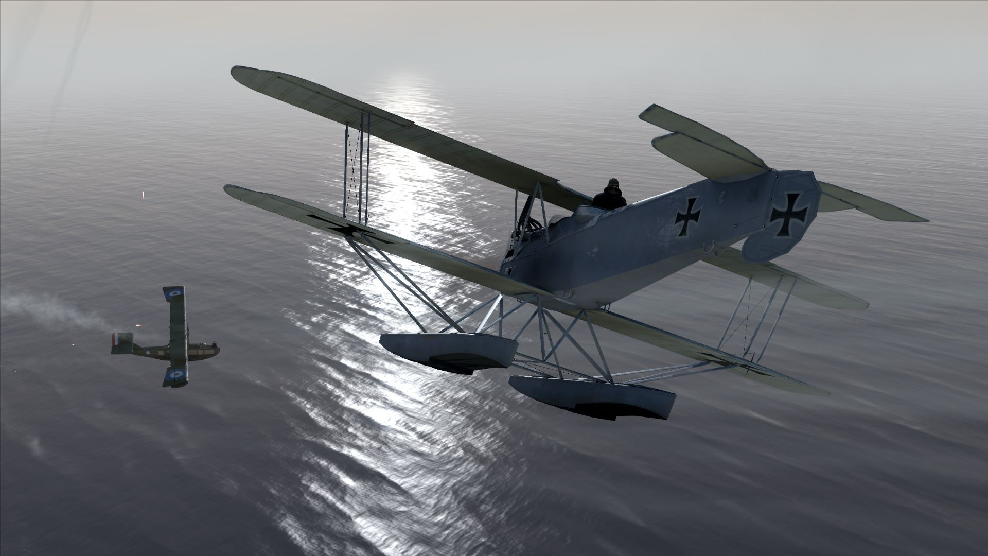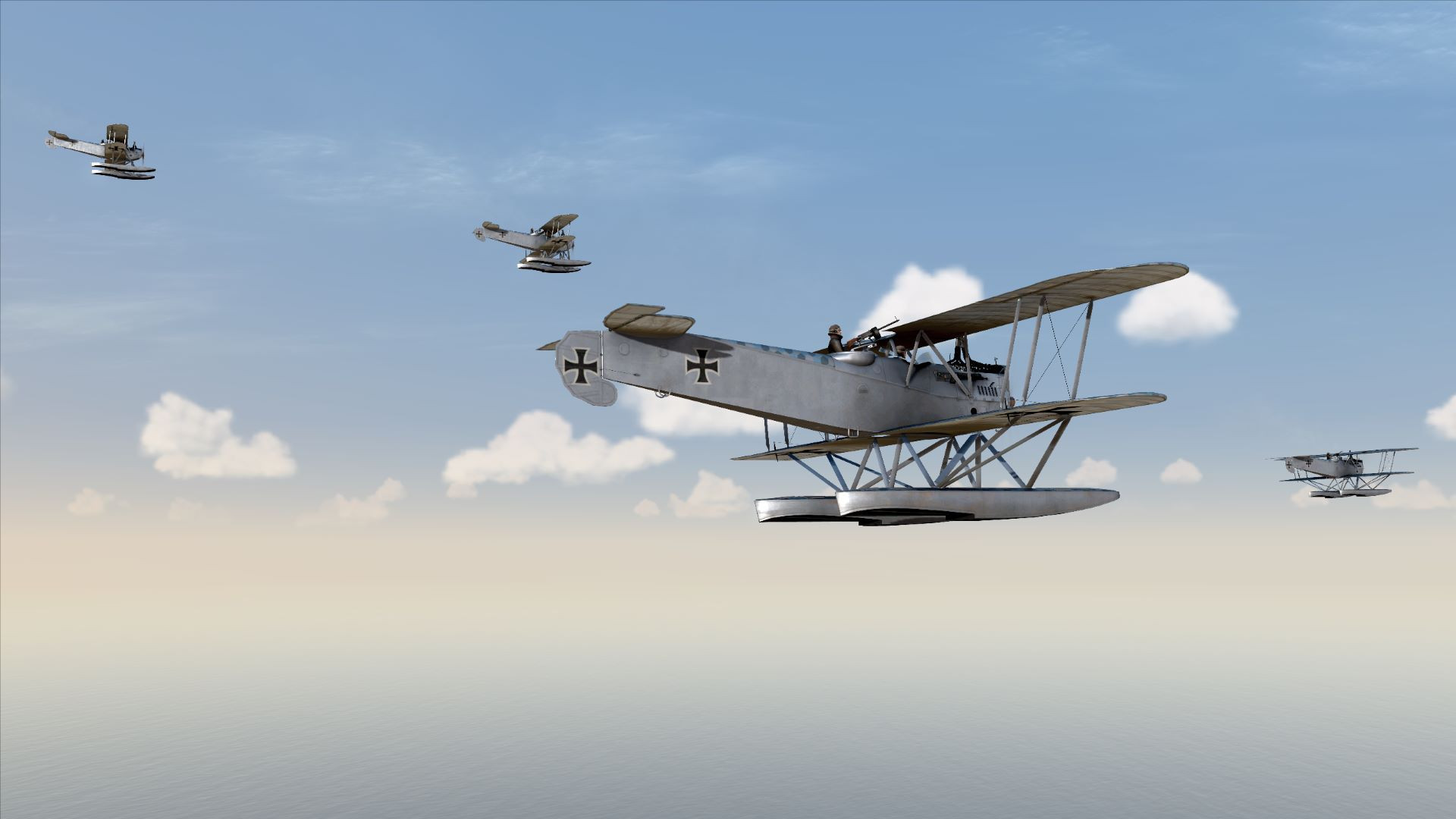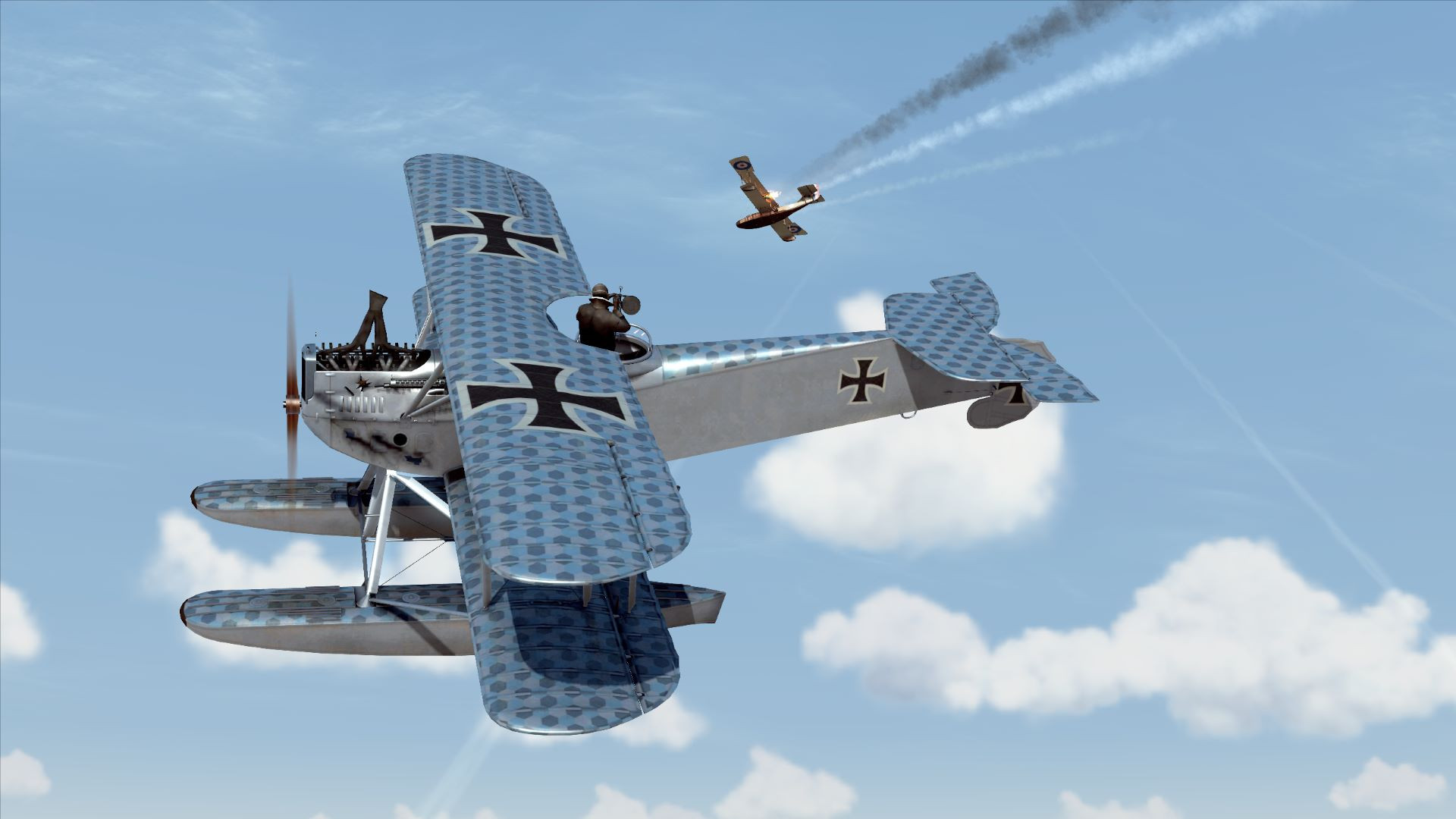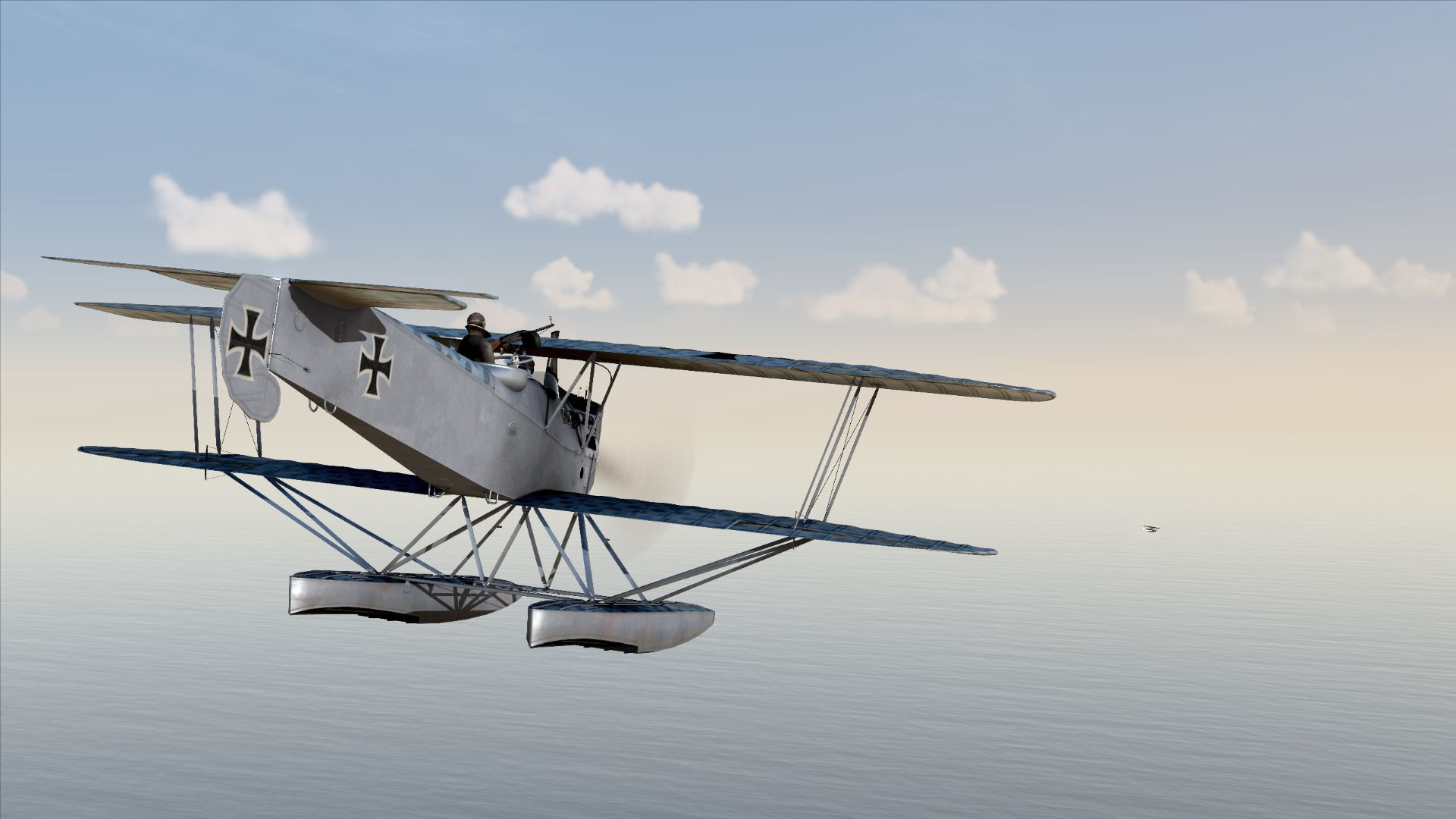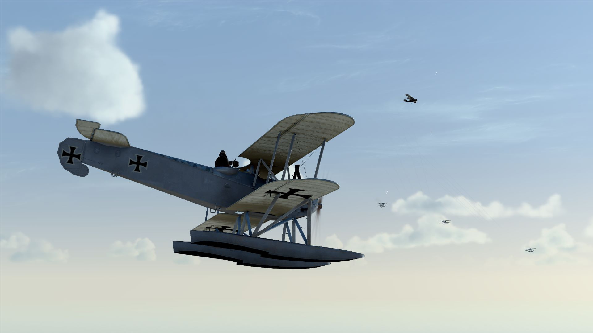 Ebot Опубликовано: 24 января Автор Опубликовано: 24 января (изменено) Карьера морского летчика истребителя Фридриха Вебера. Начало прохождения службы: 1 сентября 1917 года Эскадрилья: Seeflugstation Flandern II Место действия - Ла-Манш (также Английский канал) — пролив между побережьем Франции и островом Великобритания. Краткая биография : Скрытый текст Фридрих Вебер родился 1892 году в семье рабочих. Жили бедно, как и все его родственники, в ветхих многоквартирных домах, на одной улице в центре Нюрнберга. Уже с 11 лет Фридрих Вебер был вынужден работать на маленькой фабрике. Как и всех мальчишек его возраста интересы у него были обычные - занятия спортом, езда на велосипеде, увлечение девушками и так далее. Однако, из-за вынужденной необходимости постоянно работать, времени и сил на развлечения просто не было. По этой же причине Фридрих нечасто посещал школу. Все это повлияло на его характер и к 15 годам он стал холодным и дисциплинированным, и по итогу обратился к немецкой армии как к возможному карьерному пути, главным образом потому, что его оценки в школе были недостаточно хороши, чтобы стать тем, кем он хотел стать, - профессором университета. На заре взрослой жизни и надвигающейся Великой войны. Фридрих Вебер узнал об авиации и сразу же влюбился в идею полета и связанною с этим романтику. После того как Фридрих Вебер расплатился с долгами своей семьи, отработав дополнительные часы на фабрике, он поступил на службу в "Люфтштрайткрафт". Благодаря своему твёрдому характеру и хладнокровию, Фридрих Вебер показал себя многообещающим пилотом и был первым в своей учебной эскадрилье пилотом-одиночкой. Когда Фридрих Вебер, наконец, завершил обучение, 1 сентября 1917 года его перевели на базу гидроавиации Фландрия II. Фридрих находит в войне определенную романтику, и часть его души надеется, что она никогда не закончится. Он наслаждается ощущением неизвестности, выживет он или умрет, или попадет в плен и сбежит. И мечтает о том, как однажды обзаведется семьей, женится и купит собственный дом. Звание : Унтер-офицер 13 день Первые несколько боевых вылетов оказались довольно банальными. Столкновения с противником не произошло. И казалось бы ... Но вот уже в третьем одиночном вылете схлопотал строгий выговор за повреждение самолета. Запись из рапорта: 10 Сентября 1917 Получен первый строгий выговор. Допустил ошибку в момент приводнения, неверно расчитав параметры посадки, в результате которой самолет скапотировал и получил повреждения. В строю: 13 дней Бортовой журнал: 3-ый боевой вылет на фотографирование вражеских целей. Поскольку полеты совершаются над морем, настало время для навигации и соответствующей минимальной предполетной подготовки. Выписываем результаты Взлетаем Следуем по маршруту. Летим не одни. Нас сопровождают. Как говорится : " привет маленькие! рады видеть вас..." В расчетное время выходим в зону поиска цели и расчехляем фотоаппаратуру. Вот и наша фотомодель Фотосессия завершена, летим домой. И казалось бы сел нормально ... И сразу после касания, как положено - взял штурвал на себя, но вместе с тем , зачем то, вывел двигатель на взлетный режим ... в результате самолет взметнулся на дыбы... Осознав ошибку, я тут же убрал газ, что было, еще одной ошибкой.. в результате чего самолет плюхнулся на воду и выполнил "сальтуху" вперед . приплыли! Командир эскадрильи, был н
