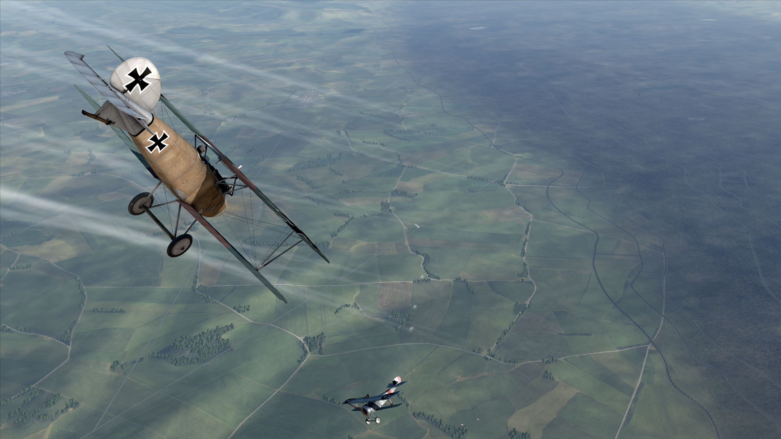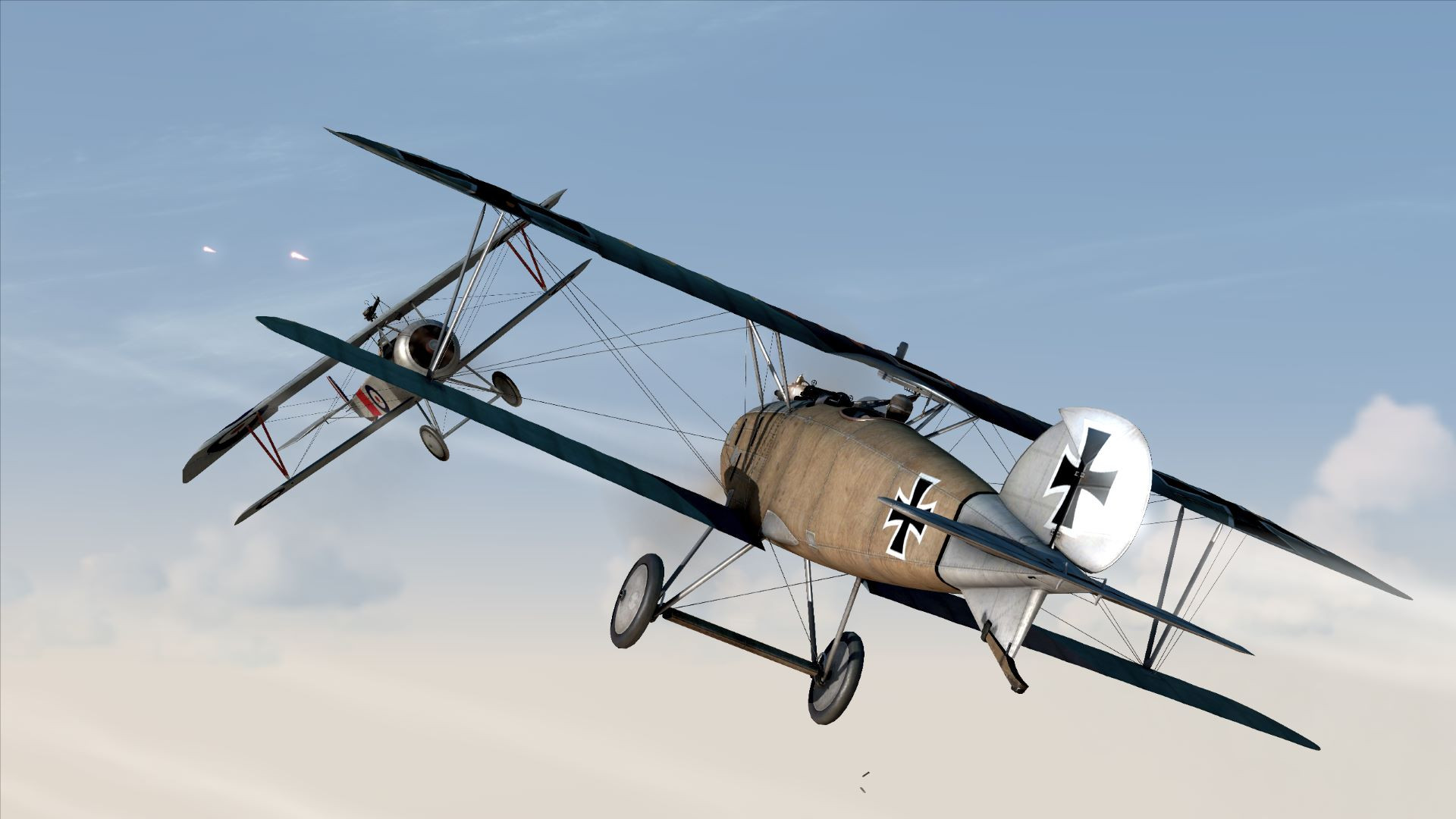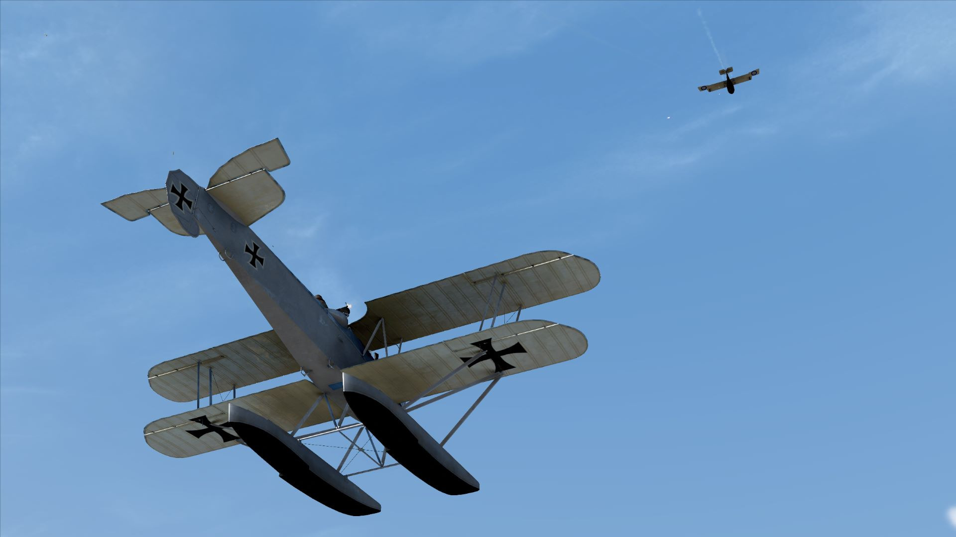 Ebot Опубликовано: 8 февраля Автор Опубликовано: 8 февраля 07.02.2025 в 18:58, alexmark77 сказал: Там на "Айндеккере" "Ньюпор" ты реально не можешь перекрутить на виражах, и крылья ни у кого от пары десятков попаданий не отлетают, как в RoF. Например, "Эф-Е-Вторых" в RoF пачками можно валить хоть на чём, а в FC к нему даже подобраться близко, чтобы тебя стрелок не ранил Вчера ради интереса подуэлился. И там и там. В целом да! в FC боты пошустрее себя ведут. Не такие ленивые как в РОФ. Но в обоих попытках FE2b (версии FC) был сбит без какого либо существенного урона себе. Вот ДМ в РОФ мне понравилась больше. Самолет пыхтит, дымится, разными дымами. Разваливается в воздухе. А в FC он просто в формате дуршлака, в какой то момент уходит в пикирование и разваливается лишь от скорости падения. в РОФ от стрелка так же можно отхватить в любой момент. Сбивать пачками не получится, чтоб прям гарантированно, поскольку банально не хватит патронов. Максимум троих. Если очень повезет четверых. В остальном просто удается подранить и отправить на вынужденную. Тут да! можно и 5 и 6 побед себе записать. с EIII vs Ньюпор. В версии FC - действительно бота перекрутить сложнее, но не так что бы сильно сложнее. И опять ДМ в РОФ эффектнее.