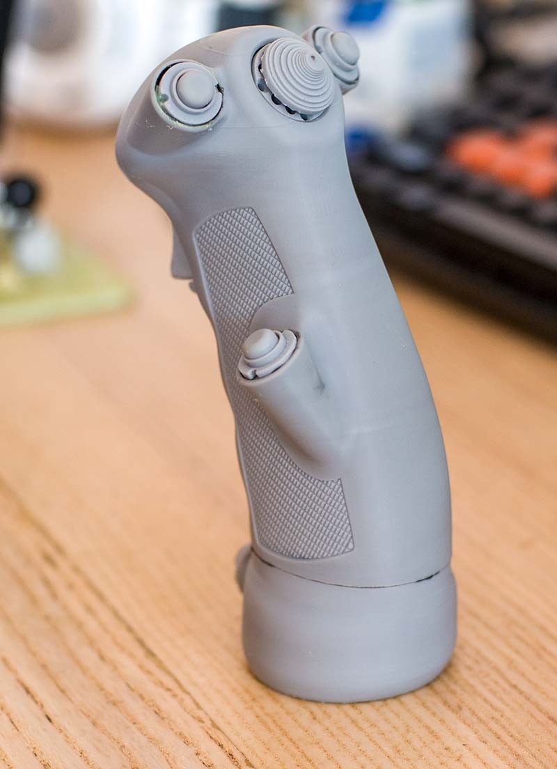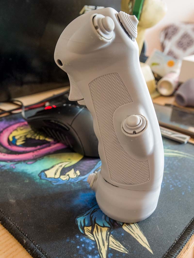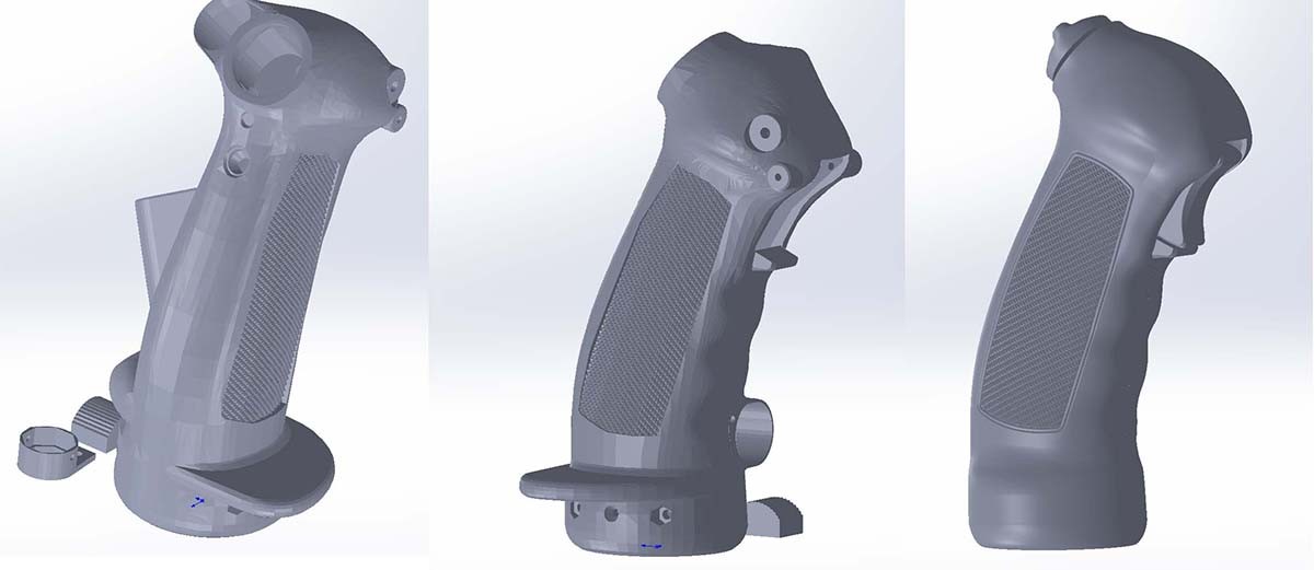 micro-flight Опубликовано: 2 мая 2023 Опубликовано: 2 мая 2023 Набрёл на одну перспективную тему как раз в области органов управления. Как то мне попалась вот эта ручка В общем то моделей ручек в сети не то, чтобы изобилие, но хорошо сделанных не очень много. Эта ручка привлекла тем, что по заявлению автора это 3д скан с реальной ручки. Заказал печать, получил и обнаружил следующее: ручка в отличии от многих реплик и самоделок не монструозная и по размеру практически такая же как и моя ручка, если укоротить крепёжный наплыв снизу. То есть можно ставить как на настольный джойстик, так и на напольный, а это важный и отличный показатель. Дальнейший анализ эргономики (повертел в руках), показал, что ручка всё таки удобная, но имеет классические эргономические недостатки связанные с ручками вообще. Большой палец упирается в угол наплыва кнопки, мизинец пересекает ось кнопки под мизинец. Что в результате приводит к классической "козе" для удержания ручки. Не то, чтобы это плохо. Но это неудобно и означает более высокую утомляемость и постоянное неудобство в этих двух зонах. Причем неважно, располагаю ли ручку на уровне настольного джойстика или на уровне напольника, то есть проблема не исчезает в зависимости от положения, значит дело в конструкции. Второе это то, что модель низкополигональная. Правда после печати модель выглядит гораздо лучше чем сама полигональная модель и можно её использовать сразу. Не могу сказать, может автор решил выложить в широкий доступ огрублённую модель или она такая получилась после обработки сетки. Но модель ручки есть только такая, в архиве еще вариант этой же ручки с подставкой под ладонь и автор обещал сделать ещё вариант с кнопкой справа. Поэтому я решил попросту перемоделировать ручку с нуля используя эту как референсную, чтобы не потерять особенности формы. Получилась базовая ручка с курком и хаткой. После этого выяснил, что на основе этой базы и делалось всё остальное в этом семействе ручек, поэтому пришёл к мысли, что можно просто дополнять нужными элементами в любом сочетании. Какое требуется под персональные требования. И можно легко варьировать и область крепления. Например с прямого снизу, на вертолётный тип. И еще важный момент, отдельные элементы в определенных пределах можно двигать подстраиваясь под индивидуальные особенности руки. Например можно перемещать положение кнопки под большой палец. И одновременно сдвинуть кнопку под мизинец, так, чтобы она не мешала плотному хвату, случайно не нажималась и была физиологична по расположению. Интересная и перспективная тема для разработки. С таким подходом гораздо проще изготавливать ручки под индивидуальные особенности. Можно, например, изготовить кучу частей, которые можно собрать-склеить в одну модель и примерить на руку. Если возникают какие-то пожелания, передвинуть ту или иную кнопку, крепление, то можно просто перепечатать часть ручки а не всю и примерять снова. Учитывая стоимость продаваемых ручек, даже с примеркой это будет гораздо выгоднее и даёт более гибкий подход, чем скажем какой-то китайский массовый производитель. И позволяет легко варьировать не только эргономически, но и конструктивно под текущие проекты. От 5 кнопок до 9 или больше, в зависимости от потребностей. 4