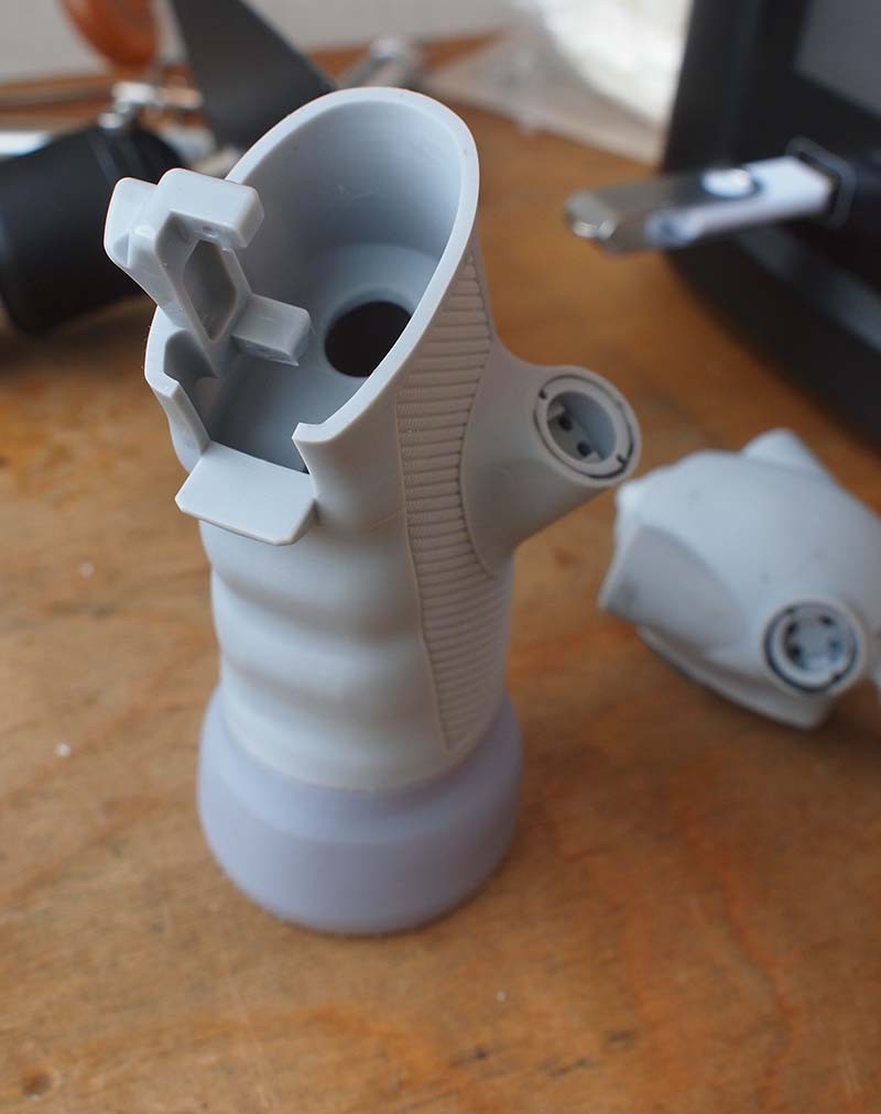 micro-flight Опубликовано: 12 июня 2023 Автор Опубликовано: 12 июня 2023 Попробовал напечатать голову с дополнительной кнопкой отдельно. Получилось неплохо и отлично состыковывается с самой первой напечатанной нижней частью (без кнопки) Кнопка справа на голове, довольно удобно касаться Средняя часть ручки без головы, отличный доступ к внутренностям, можно размещать и отлаживать как надо. И с микриком на подрамке Интересны ощущения от ручек с разным числом кнопок, вроде бы та же самая, но воспринимаются по разному. Дальше смысла просто так печатать не вижу, можно пробовать уже подготовку к композитам. Учитывая чистоту печати, особой доработки модели не требуют, можно поэкспериментировать с печатью болванок под изготовление матриц. Внутрянка, конечно, поменяется, так как ручки будут тонкостенными, до 1 мм толщины стенки и внутренние поверхности будут другими. 7
