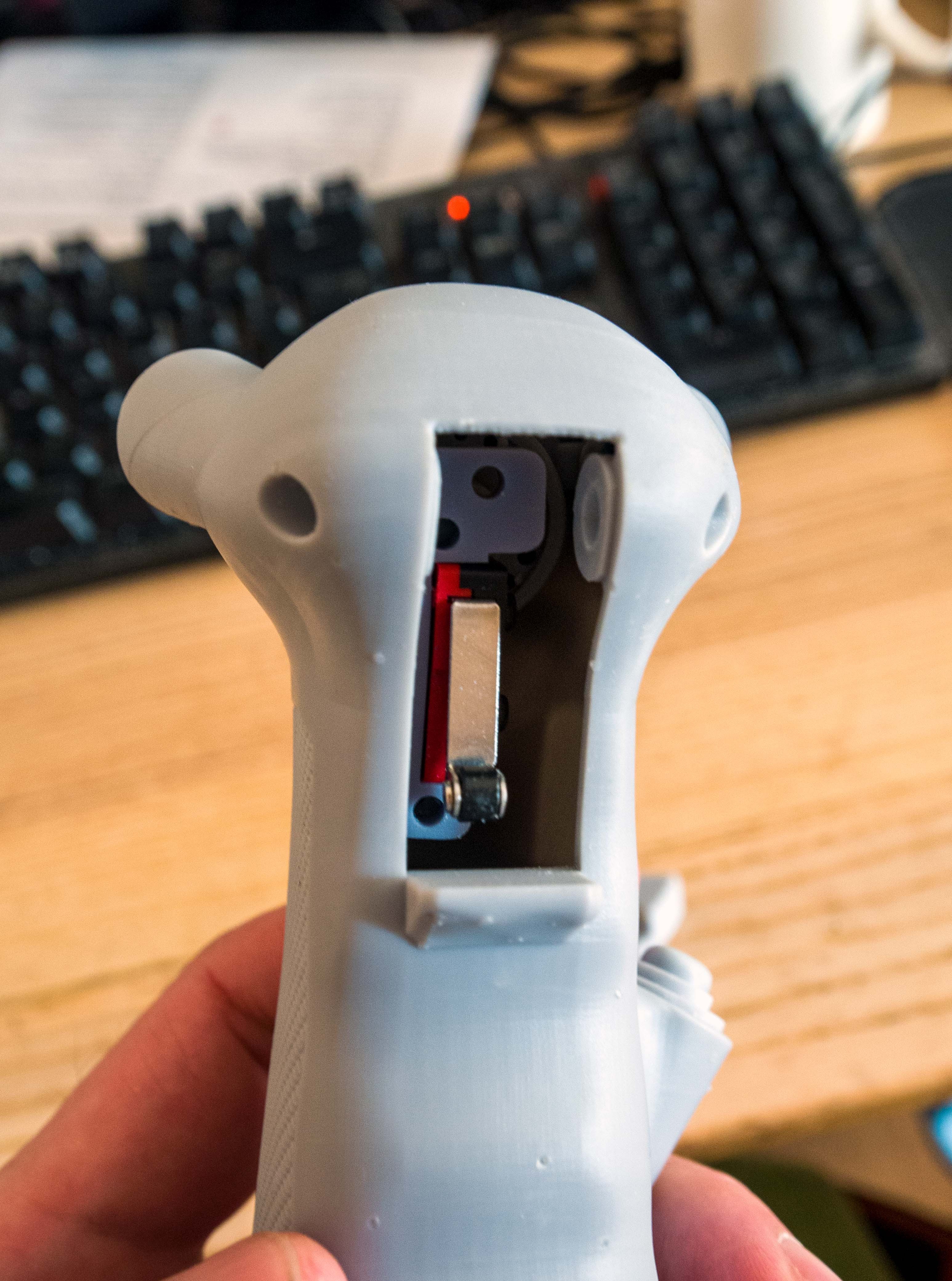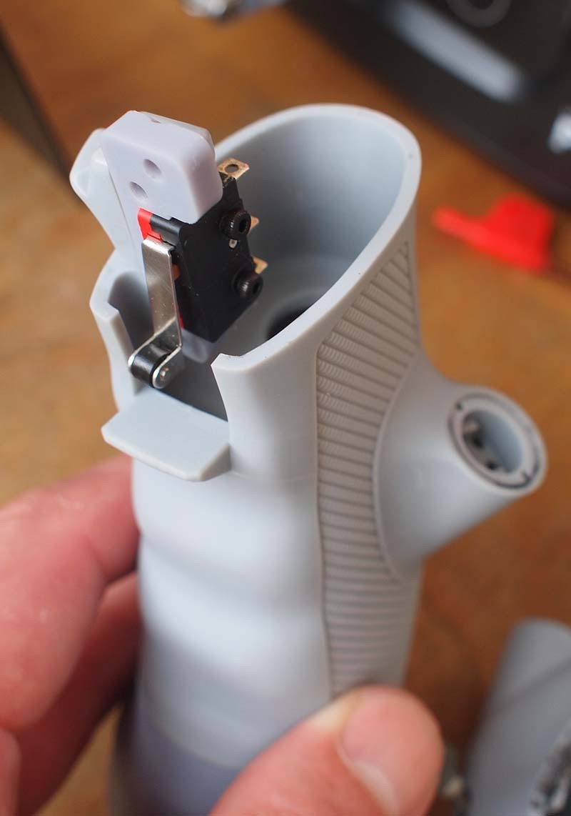 micro-flight Опубликовано: 7 июня 2023 Автор Опубликовано: 7 июня 2023 Пока вместо оси курка использовал шарошку, обнаружил ещё одно отличное место для кнопки, которая прямо напрашивается под указательный палец. Вообще не мешает ничему, ну палец очень так естественно ложится в это место и одновременно с нажатием этой кнопки можно нажимать еще две кнопки одновременно или управлять хаткой без перехвата или ослабления хвата.