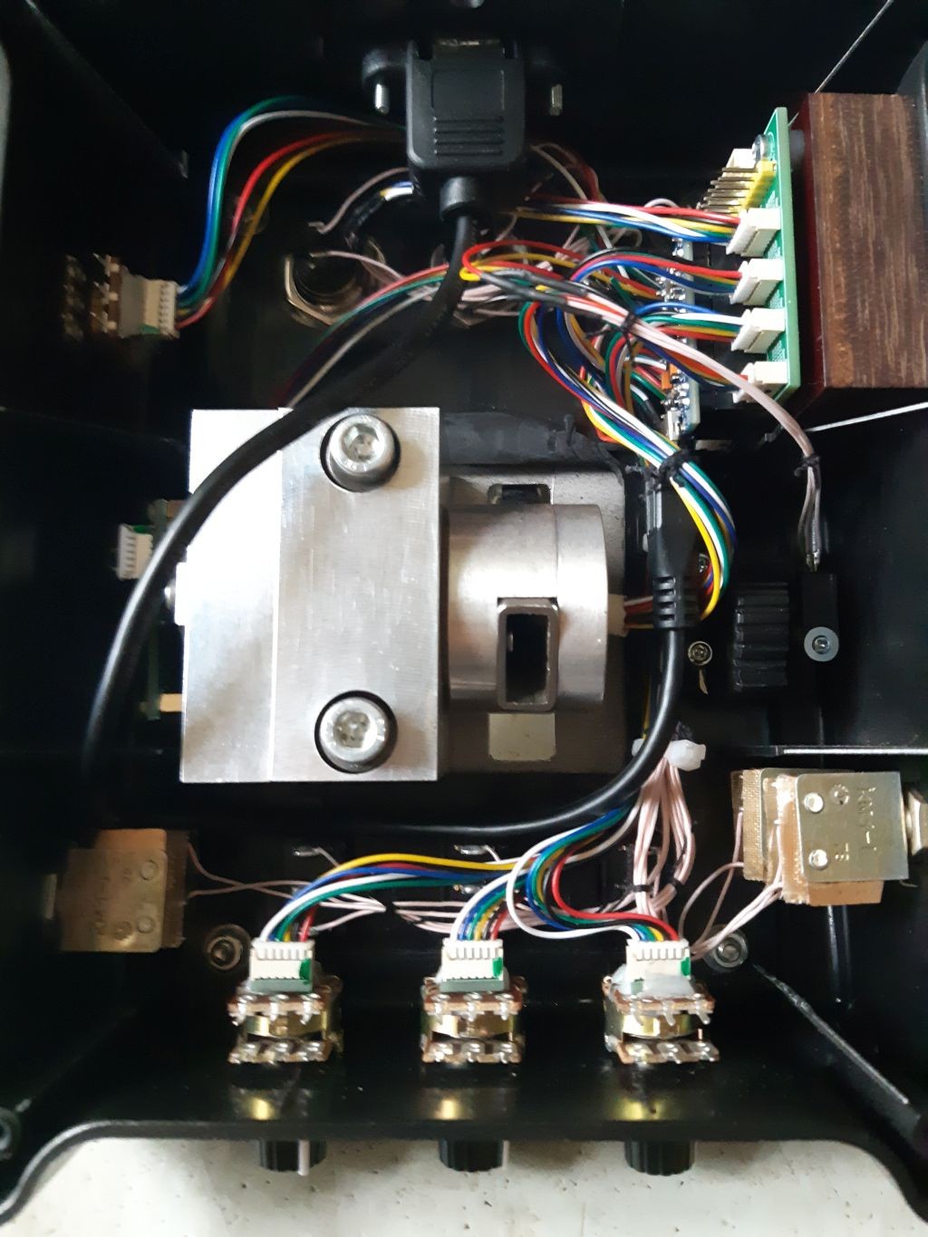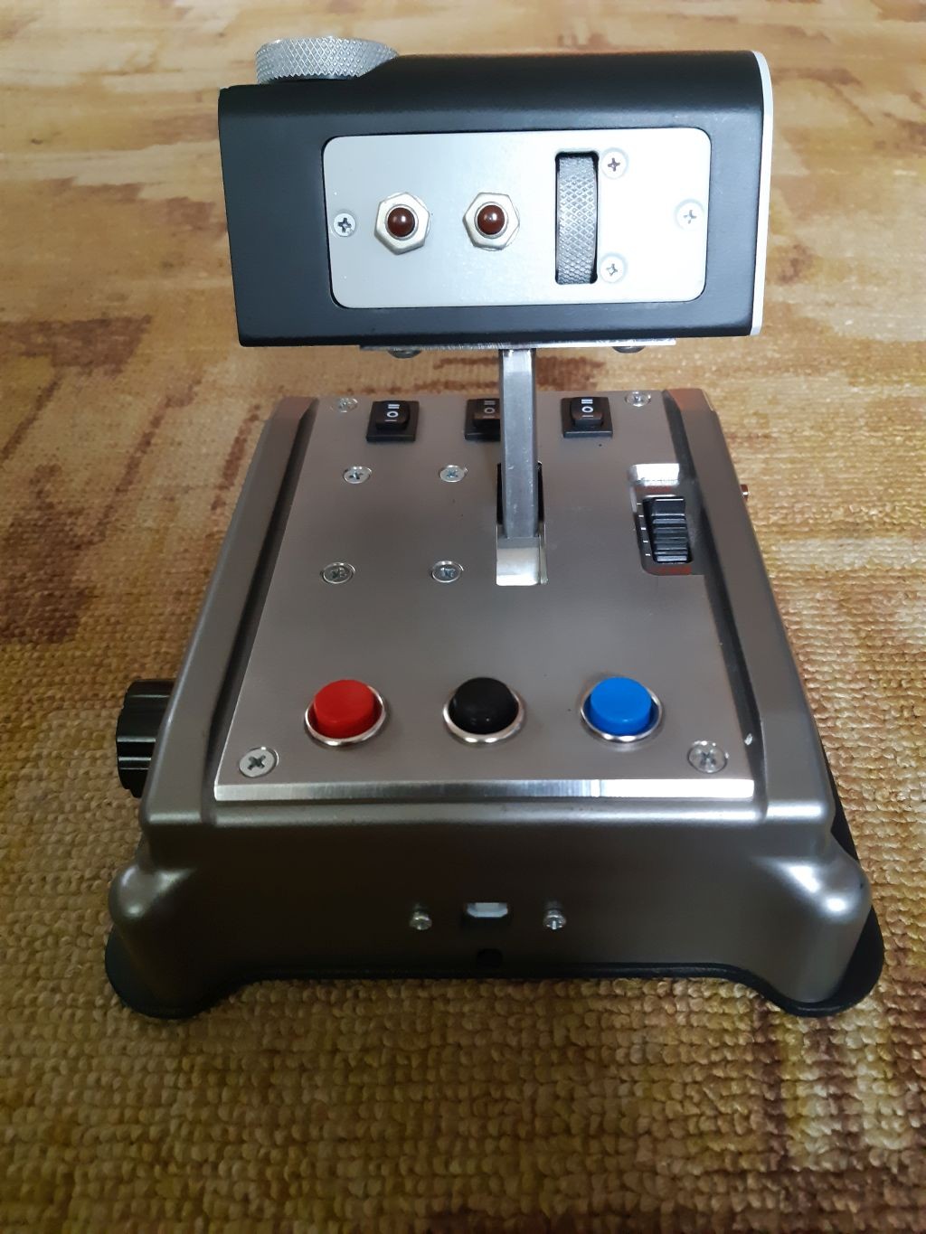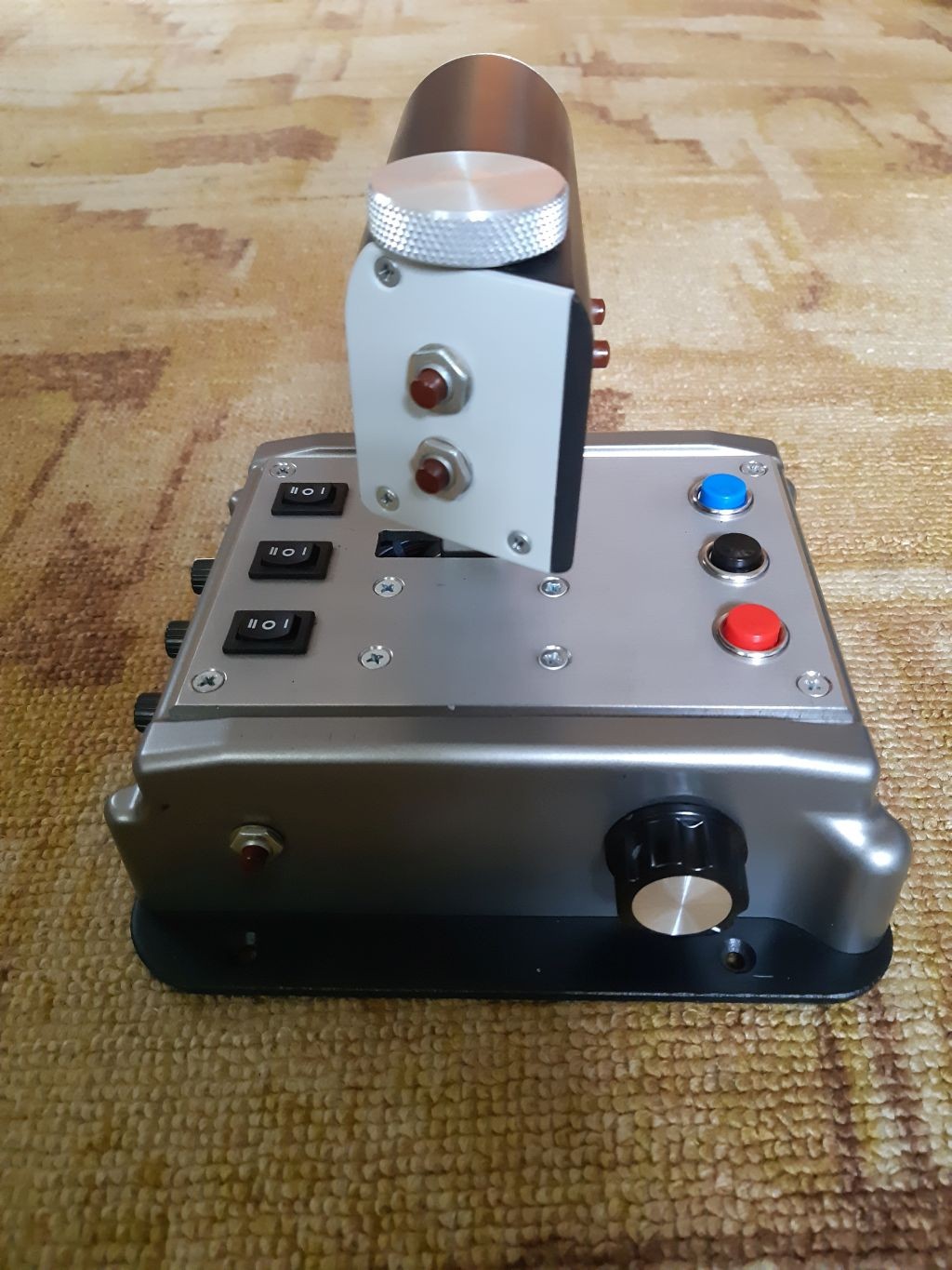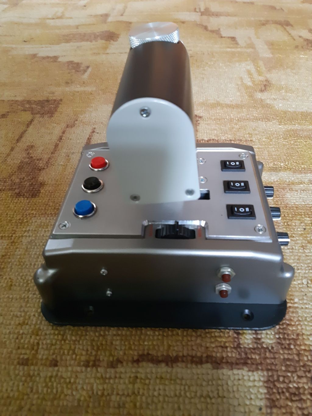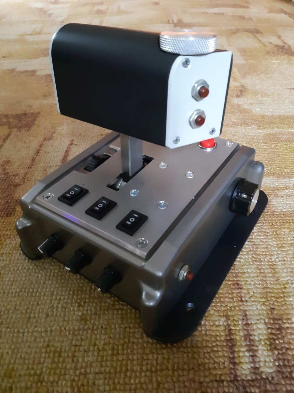 probel Опубликовано: 1 июля 2023 Опубликовано: 1 июля 2023 (изменено) 1) осей - 8, шесть цифровых на TLE5011, две аналоговых из которых одна ось штатная от Кобра М5.2) кнопок - 16, из них семь кнопок КМ 1-1, три кнопки PBS26B, три переключателя MRS-123A.В руд применён контроллер Ммджой2 (ардуинка) на плате шильд от Swift_СССР.Усилие на ручке тяги регулируемое, снимается нижняя панель, после чего усилие регулируется (симметрично) двумя болтами на механике (см.фото).Механика на двух подшипниках, материал механики - Д16Т, ручка тяги материал - капролон (покрашен в чёрный цвет, шток и пластина на которой крепится ручка - нержавейка), панель на которой размещены основные устройства - нержавейка, толщина панели - 4 мм. ссылка на авитоhttps://www.avito.ru/chistopol/tovary_dlya_kompyutera/tovary_dlya_kompyutera_3119507686 Скрытый текст Изменено 1 июля 2023 пользователем probel 4