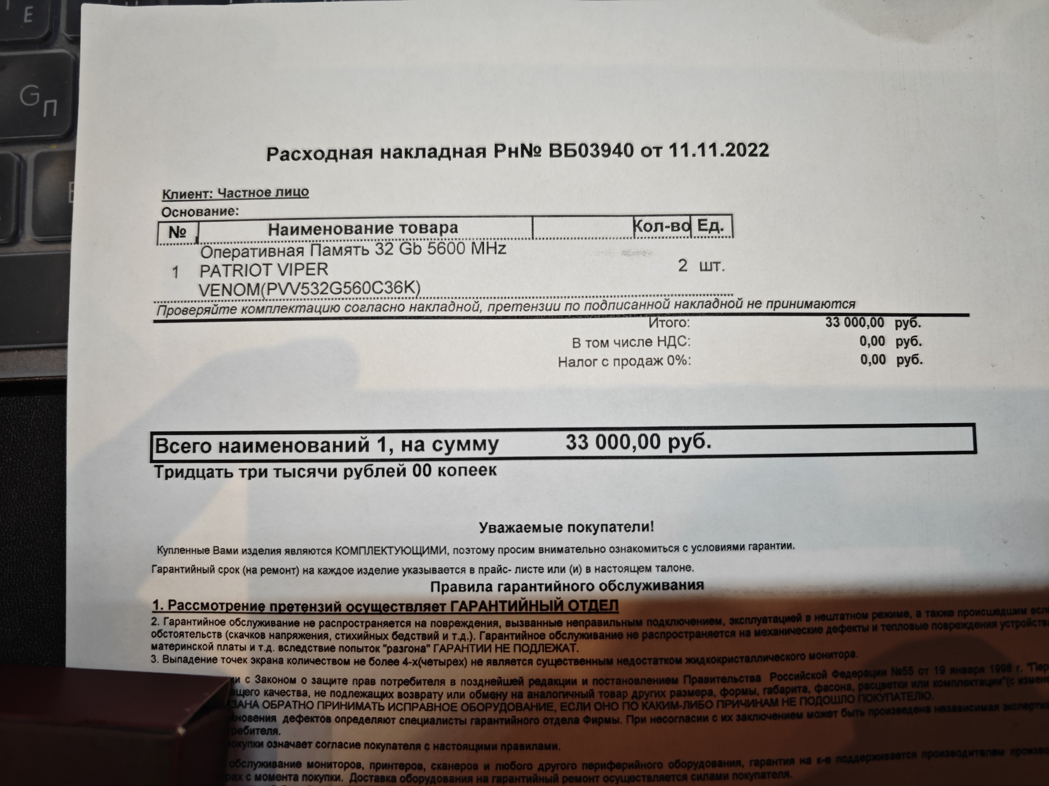 -SCS-Kaplan Опубликовано: 11 августа 2023 Опубликовано: 11 августа 2023 Продаю в Москве память ДДР5 ..64гига 2 кита по 32гг (2х16) Патриот Вайпер веном..Не гналась..стоит в монтажной станции..проведу любые тесты..отправлю куда угодно. стоимость 8.000 за 32гг чек прилагаю..была куплена на пике,когда ее вообще еще не было)) вот обьявление на авито https://www.avito.ru/moskva/tovary_dlya_kompyutera/viper_venom_ddr5_2x16_5600_64gigabayta2_kita_3300263467 продаю так как перешел на плашки по 32гг. Отвечу на любые вопросы.