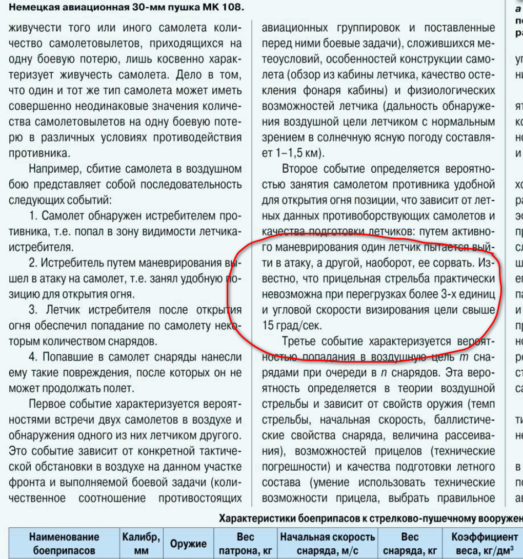 Student33 Опубликовано: 21 октября 2023 Опубликовано: 21 октября 2023 (изменено) 12 часов назад, Lofte сказал: А при чём тут человек вообще? вибрирует ли человек или нет, видит он, чувствует - это безразлично. Не безразлично, что при стрельбе весь самолёт и его отдельные элементы вибрируют и создают хаотичное рассеивание при котором невозможно прицельно стрелять на дистанциях 700 м. А в игре возможно. Поправочку вынес на дальность - и - получите и распишитесь. Попрубуйте из неподвижной снайперской винтовки попасть по неподвижной цели размером с фронтальный силуэт самолёта на 700 м. Там ещё хрен попадёшь.. А тут прицельно стреляют, попадают, сбивают и это повсеместная практика, а не уникальные случаи. Я думаю даже не 700 а 200-300 м. предел для прицельной стрельбы. С ракурсами прицельной стрельбы тоже беда. «Инструкция по воздушному бою истребительной авиации (ИВБИА-45) § 74. Основной мерой для сокращения расхода боеприпасов является ограничение длины очереди строго необходимыми размерами. Необходимая длина очереди зависит от дистанции и углового перемещения цели и может быть подразделена: на короткую, среднюю и длинную. Короткая очередь длится по времени 0,5 сек. и может быть применена при больших дальностях стрельбы (свыше 300 м) и больших угловых относительных скоростях противника (свыше 10° в сек.). Средняя очередь длится по времени до 1 сек. и может быть применена при точном прицеливании и при небольших угловых относительных скоростях противника (не более 10° в сек.), когда возможно непрерывное прицеливание. Длинная очередь длится по времени до 2 сек. и может быть применена при очень малых угловых относительных скоростях противника (2—3° в сек.) и малых дальностях (не более 75—25 м). когда имеется возможность вести огонь до полного уничтожения противника. Изменено 21 октября 2023 пользователем Student33 2 1