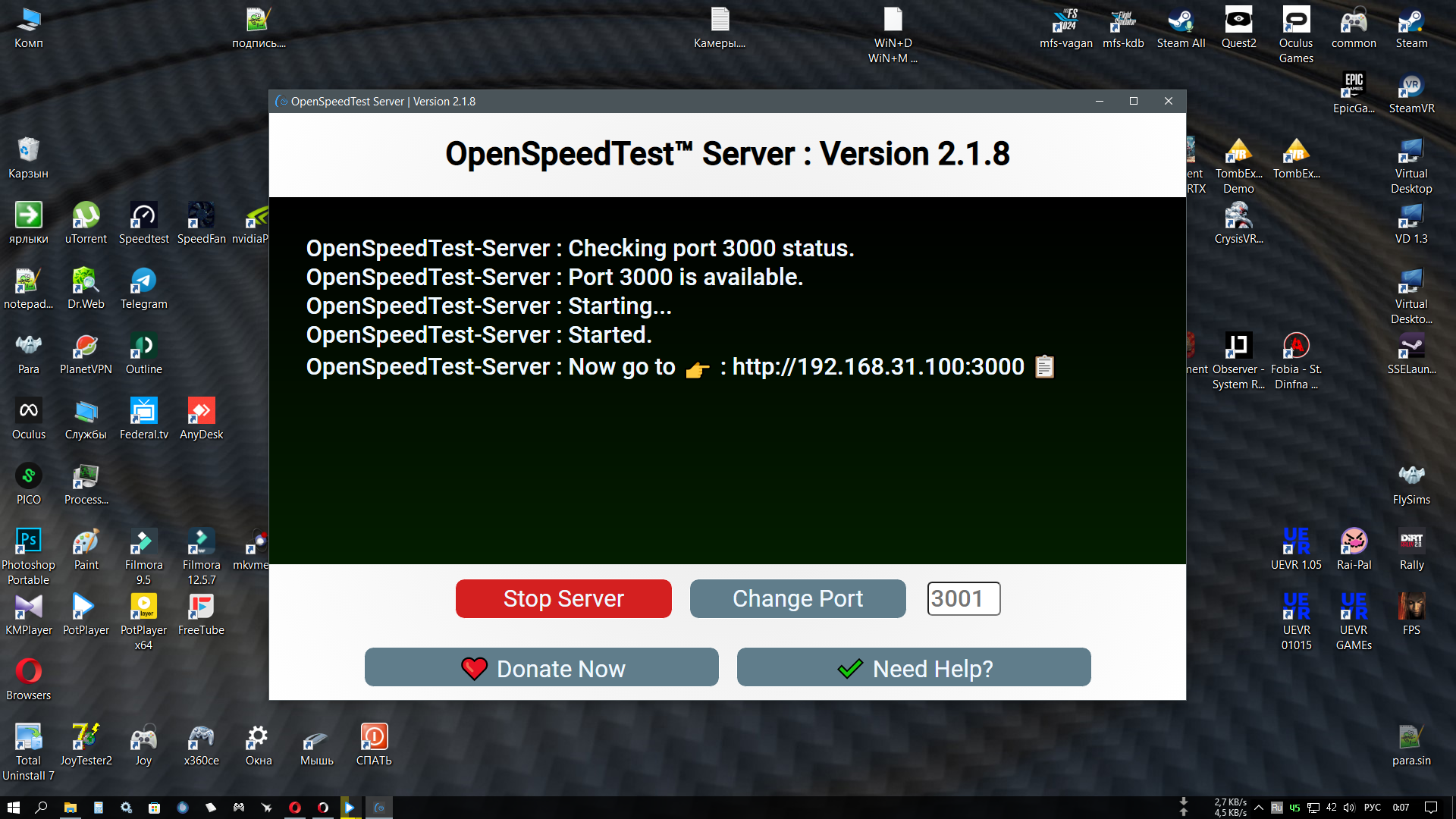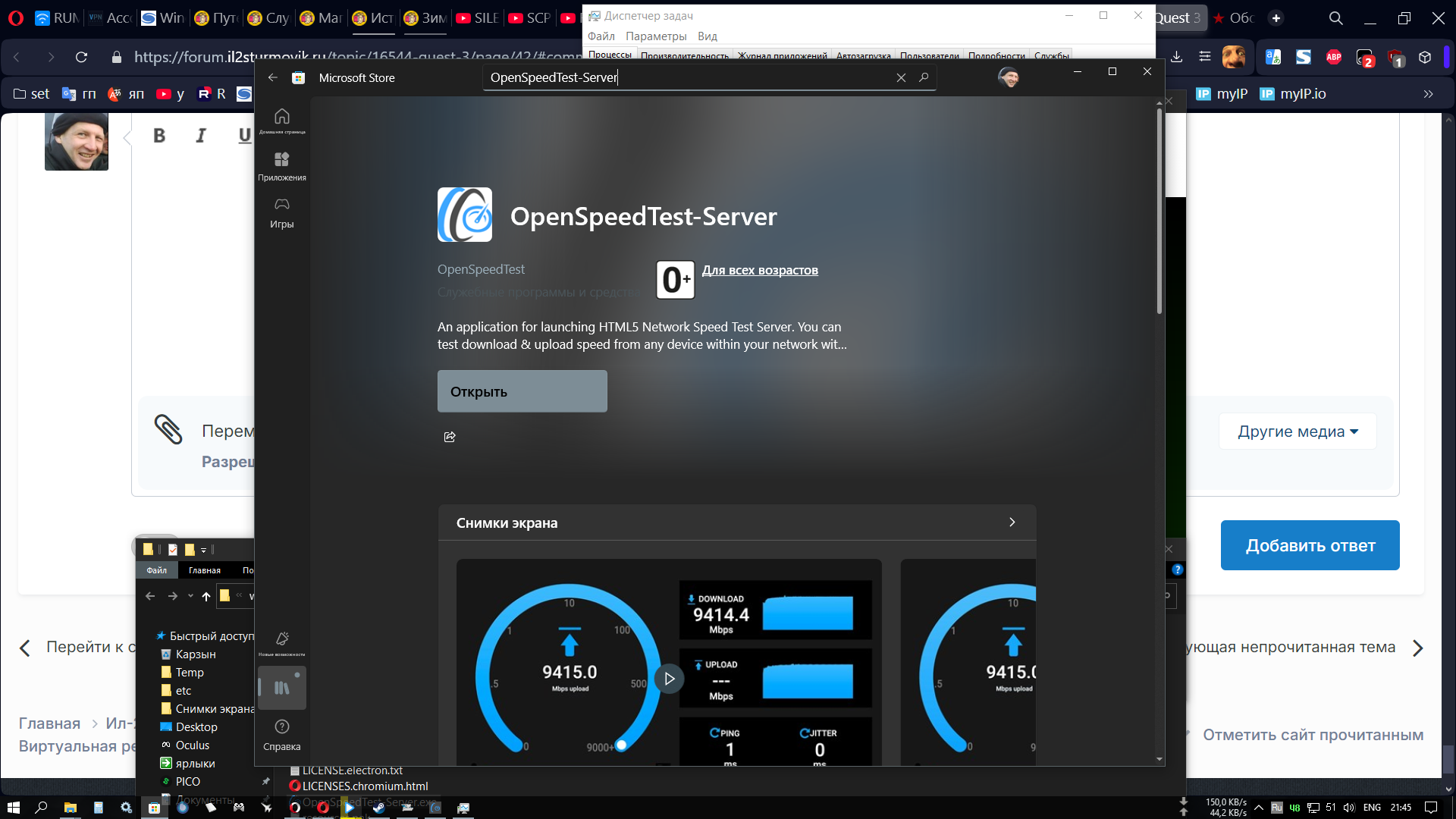 Antony99 Опубликовано: 13 февраля Опубликовано: 13 февраля 11.02.2025 в 03:28, Botanik сказал: speedtest в БРАУЗЕРЕ Q3? лучше скорость стала. Сегодня550- 620 mb показывал, закачка . Нет, именно сервер, ставишь на комп, запускаешь на компе и потом на Квесте заходишь в браузер и вбиваешь айпишник. То что ты написал это замер провайдера. 1