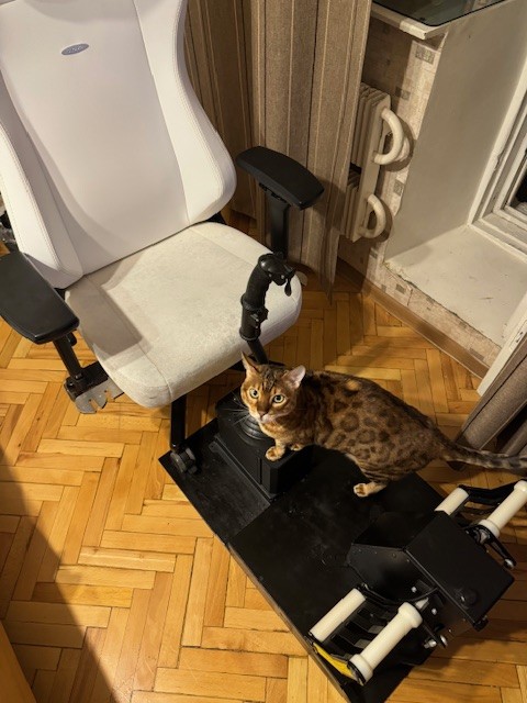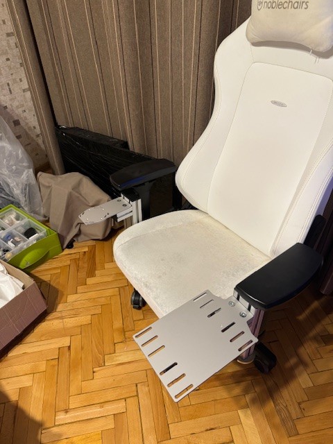 WallterScott Опубликовано: 5 декабря 2023 Опубликовано: 5 декабря 2023 (изменено) Продам вот такой комплект. Кресло NOBLECHAIRS HERO. В мастерской полностью переделано сиденье. Укорочена на 6 см рама, вырезана, сварена и заново покрашена (кресло было очень глубокое, оставшегося вполне хватает для повседневной работы и не мешает ручке руса), наполнитель подогнан под новый размер, перешита обивка - с кожзама на флок. С таким материалом не жарко летом и он не боится кошачьих когтей. Немного маркий но легко чистится. Дополнительно на кресло установлены кронштейны для руд и сайдстика, блокиратор вращения и колеса с блокировкой (все от monstertech). В комплекте и стойки от немцев. Для рус (GF) и для РУД. Кресло передними колесами становится в вырезы платформы. Стоит там намертво. На платформе педали от Виктора и РУС напольник от Баура с ручкой репликой KG. С учетом кастомизации кресла, РУС полностью выбирается на себя и отдается от себя, при этом не надо тянуться. На платформе есть запас для подгонки РУС и педалей (ближе, дальше). Так как все собиралось под кресло, хотелось бы продать одним комплектом. Цена - 60 тыс Отдельно продам GF MK III с ручкой ММГ Про. Практически новый. Использовался неделю. 27 т. р. Изменено 5 декабря 2023 пользователем WallterScott
