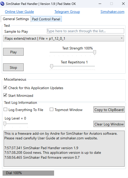 Andre Опубликовано: 11 октября Автор Опубликовано: 11 октября 23 минуты назад, Antony99 сказал: Андре приветствую. Подскажи почему на новой накидке многие эффекты сильно слабее, речь идет про DCS и например огонь из пушки и эффект воздушного тормоза, да и не только они, собственно все эффекты слабее в разы по сравнению с Перешитым в черный чехол Гаметриксом? Везде 100% мощность вибрации, профили одинаковые. Пример: На старого образца я чувствовал значения 5-10 например на воздушном(на новой стоит 50 и так себе), значения 5-10 не ощущаются вообще, огонь из пушки стоял на 50 на старой и это был даже перебор(на новой стоит 100 и не хватает). Тест возд. тормоза на 100% на скрине. Добрый день! Думаю, в первый раз я такой отзыв получаю. Новая накидка не уступает по своим техническим характеристикам тому что было у нас раньше. И диапазон возможной силы вибрации удалось расширить точно. То что эффекты могут ощущаться иначе, согласен. То что старые профили захочется подредактировать, да, скорее всего. То что эффекты стали слабее - едва ли с этим соглашусь. В любом случае, многое можно настроить под свои предпочтения. Если не хватает 50, то можно ведь поставить 100. У меня сейчас как раз готова программа - редактор эффектов для новой накидки, она работает с SimShaker for Aviators, Wings, Wheels и может быть полезна в подобной ситуации для расширения возможностей настройки. Давайте свяжемся по электронке или в мессенджерах (все же это форум Ил-2, а не DCS) и постараемся все эти вопросы решить. Напишите мне пожалуйста.