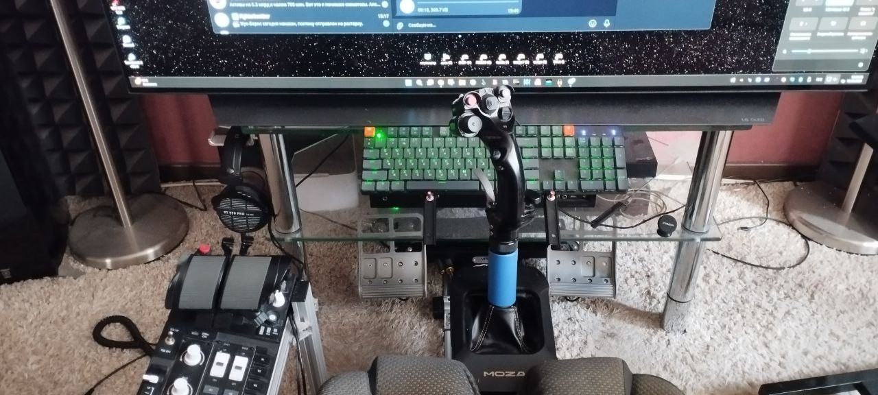 Rvanduk Опубликовано: 15 июля Опубликовано: 15 июля 12.07.2025 в 13:24, Rustam сказал: День добрый! Используете без удлинителя? Есть родной от Мозы на 98 мм., но кто-то ставит на 200 мм. от "Вирпил" (однако есть мнение, что на 200 может не подойти для самолетов). Есть мнение по данному поводу? И ещё один вопрос: крепление к столу справляется с базой или-же надо отдельную и более надежную конструкцию для этого мастерить? Добрый день! Без удлинителя. В целом, удобно. Спустил на креплении ниже – летать отлично. О покупке короткого не задумываюсь. Крепление очень хорошо крепится. Ничего не сдвигается. При этом я частенько от стола откручиваю его, чтобы поиграться в обычные игрухи. Так же, там мягкие подкладки – стол не царапается. На днях жена в подарок заказала еще РУД мозовский. Жду, считаю часы, гг. Готовлю винты и кустарное крепление. Потом на очереди, с релизом, за педалями их пойду. И, наконец, удобно поставлю ноги (нынче летаю на трастовском рельсовом руддере). 1