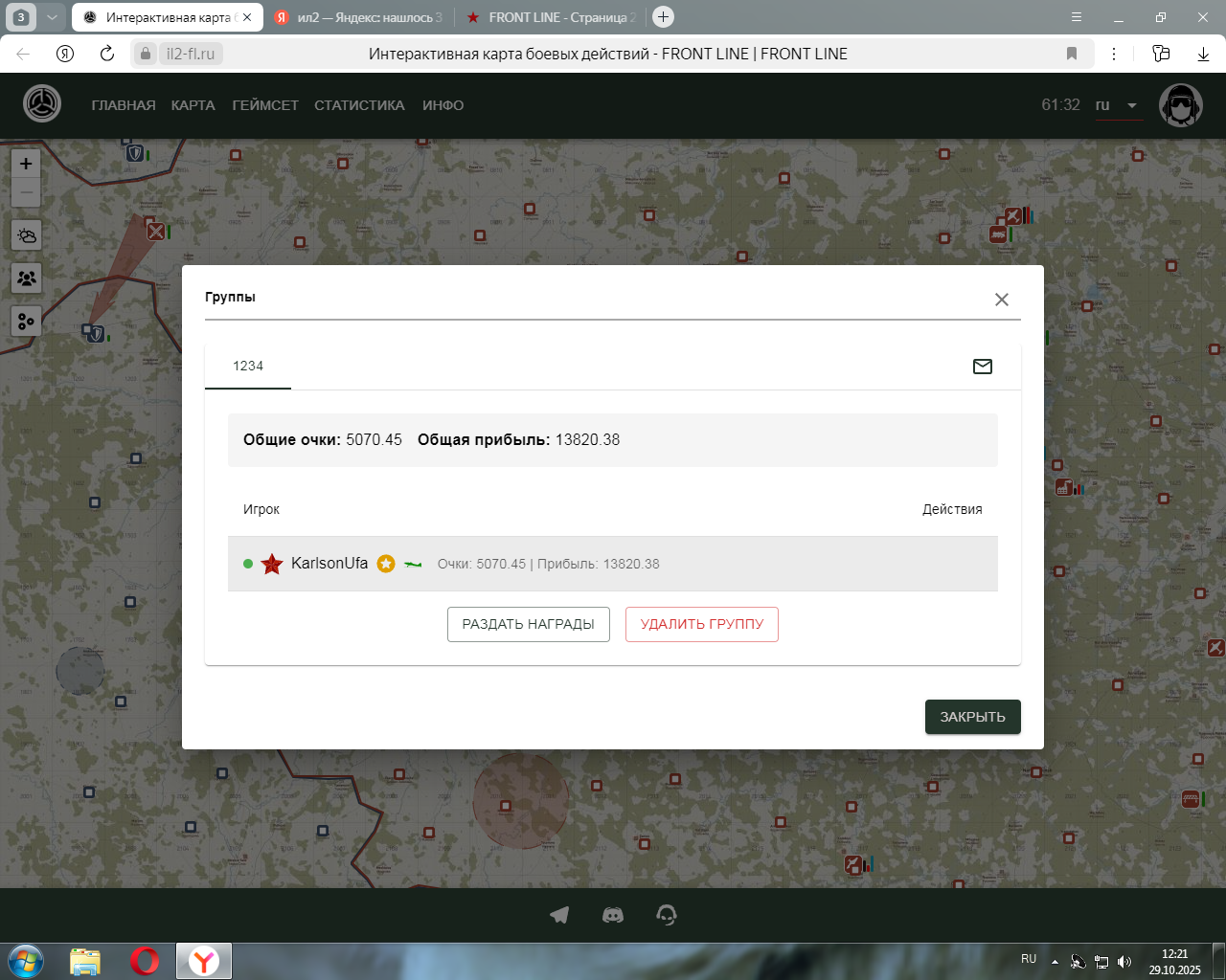 KarlsonUfa Опубликовано: 29 октября Опубликовано: 29 октября Не знаю баг это или было так задумано... Создал позавчера группу на себя одного, копил опыт в кубышку, ушел спать, утром проснулся, зашел в игру полетал еще немного опыта подкопил, заходит на сервер игрок в звании рядового, ну вот думаю есть повод распечатать копилку и поделится с человеком опытом и деньгами, открываю интерактивную карту, жму три точечки, моя группа есть, кнопочки радчать награды, удалить группу выделяются нажать их можно, а лобби в котором можно пригласить игрока к себе в группу нету, ну думаю ладно может из за того что сервер падал что случилось, пробовал перезпускать браузер, обновлять страницу с картой, лобби так и не появилось, до того момента пока я не удалил свою группу, сегодня с группой точно такая же фигня.. нету лобби, из аккаунта выходил, по новой в него заходил, закрывал открывал браузер, обновлял страницу с картой- ничего.. в чем трабла?