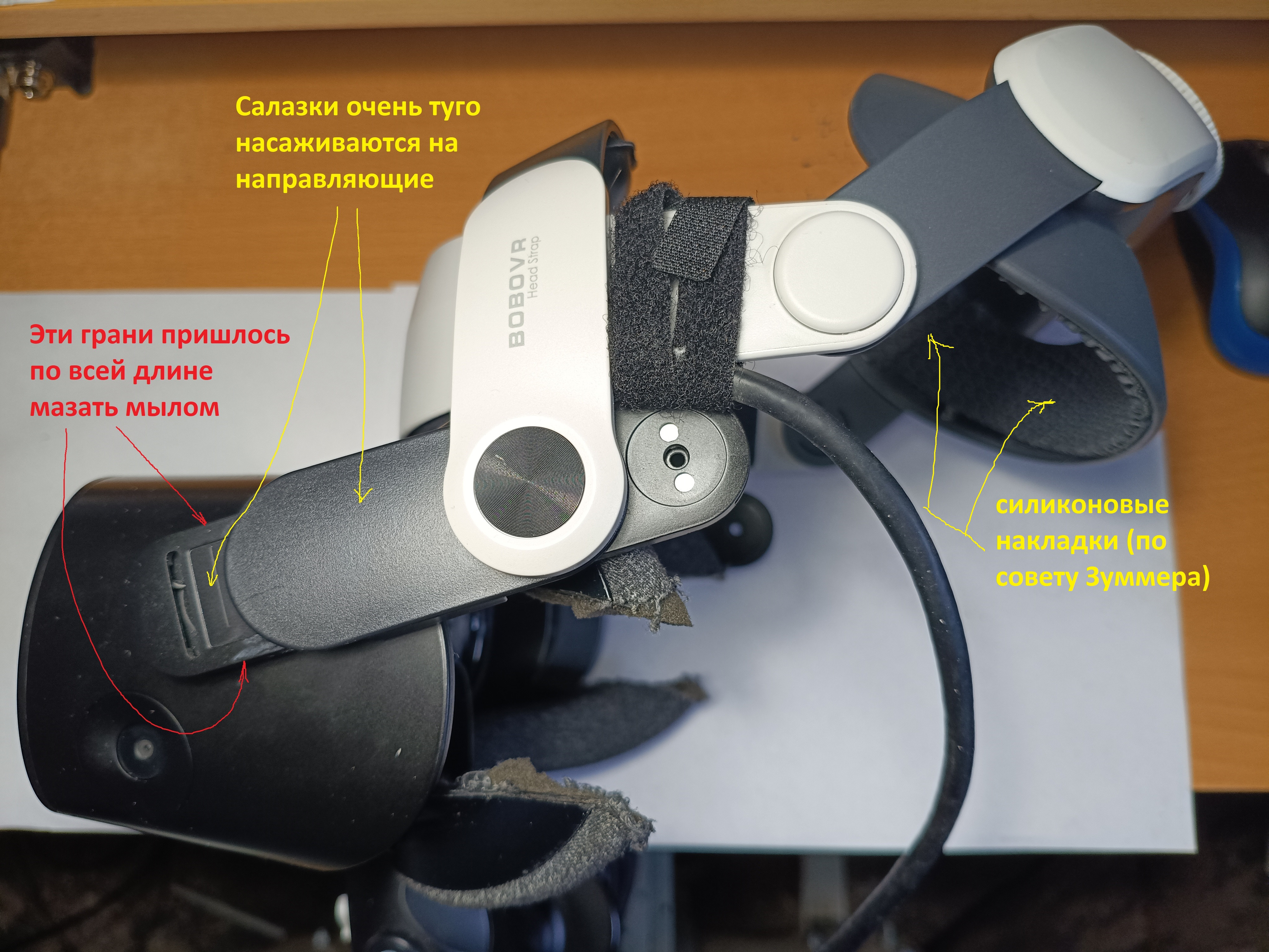 RuSh-Zummer Опубликовано: 13 ноября Автор Опубликовано: 13 ноября (изменено) 26.10.2025 в 17:18, 72AG_Olega сказал: крепление BOBOVR Вот кстати! Очень интересно что в версию BOBOVR2 салазки влезают. Это лучше чем слишком свободно в версии BOBOVR3. Вместо мыла можно использовать силикон наверное. Изменено 13 ноября пользователем RuSh-Zummer