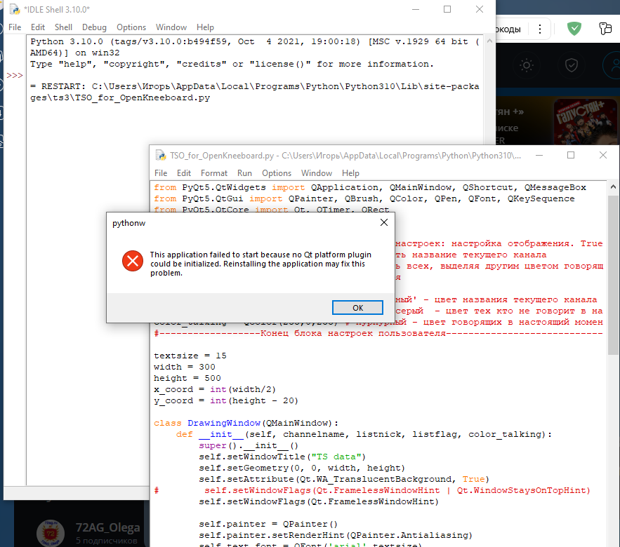 72AG_Olega Опубликовано: 27 сентября Автор Опубликовано: 27 сентября Ошибка только из-за этого. У вас в пути есть слово Игорь на кириллице. Попробуйте: 1. Сначала де инсталировать Python. 2. Создать на диске С: папку Python. 3. Заново установить Питон, указав что устанавливать в вашу созданную на диске С: папку. Дальше оставшиеся действия как на видео. 1