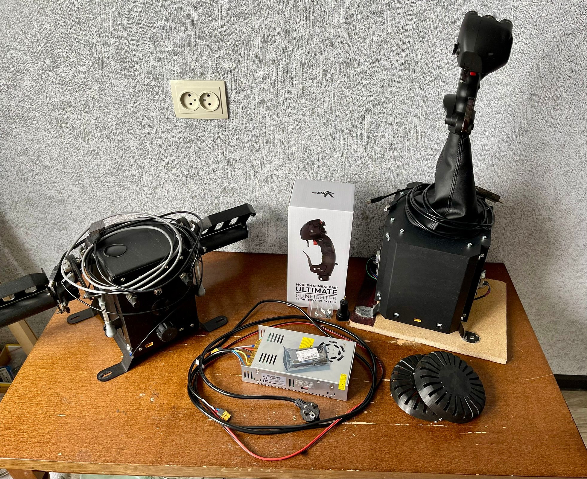 Talozan Опубликовано: 26 мая Опубликовано: 26 мая Продам б/у комплект FFB в составе: - База РУС FFB от Виктора "Мусульманина", 3-я ревизия с ключом; - РУС VKB-Sim MCG Ultimate MCG Ulti-En Rev.B; - Удлинитель от VKB прямой, 100мм; - Педали FFB от Виктора "Мусульманина", с ключом; - Программатор, USB-2хUSB изолятор, датчики на базе РУС, на обе оси, установлены AMT10E3-V, бонусом отдам переходник под гайку для ручки от "D GIR". Всё "железо" откалибровано и настроено - поставил софт, включил и летай. На данный момент продаю полным комплектом, НЕ дроблю! Если потребуются дополнительные фото, а так же, с любыми вопросами по существу, прошу смело обращаться. Причина продажи - семейные обстоятельства, совершенно нет времени на полёты, а "железо" должно "летать"... Цена: 150000р., доставка за счёт будущего владельца (СДЭК, Деловые Линии, Почта РФ).