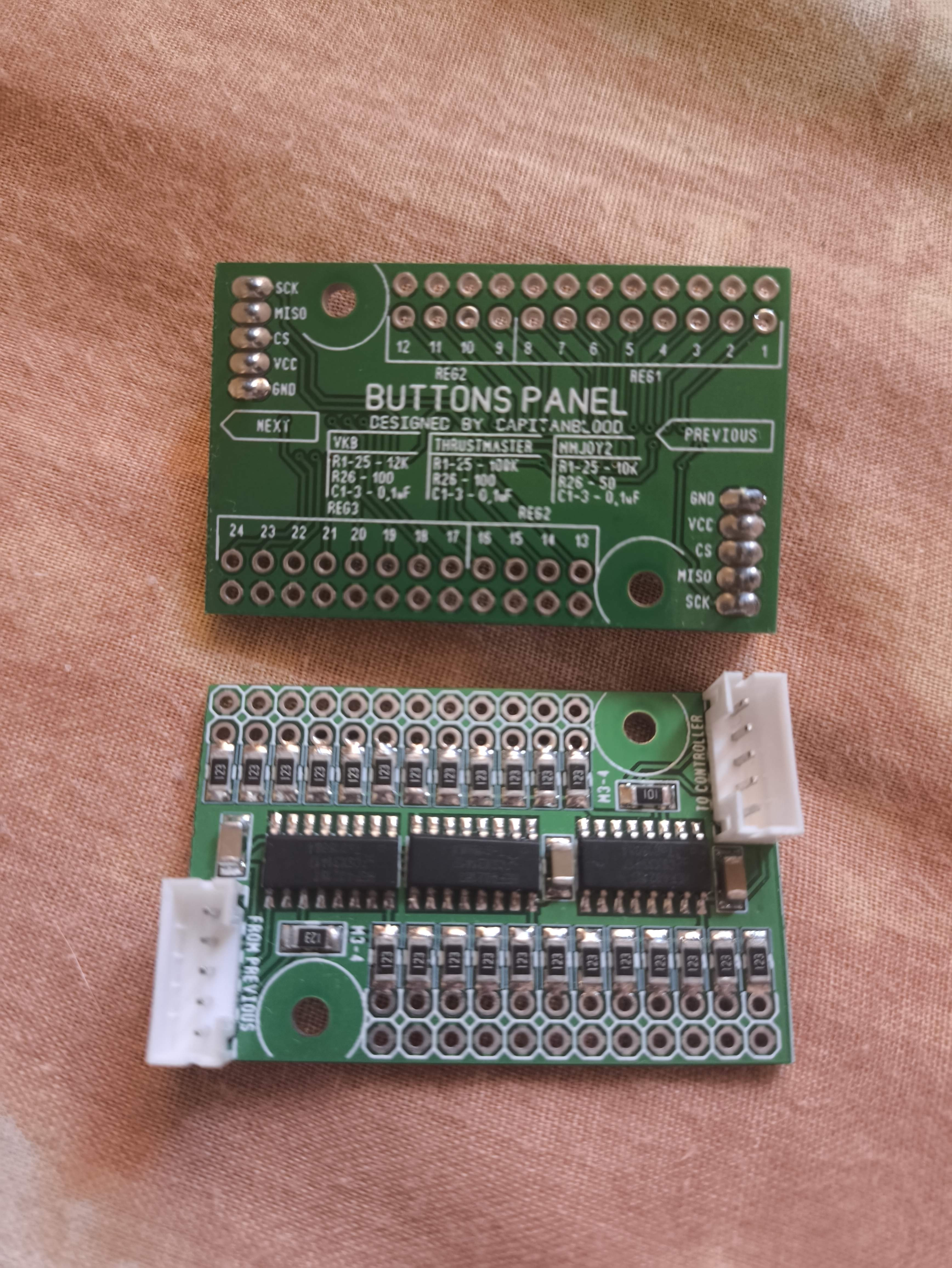 tap4ello Опубликовано: В субботу в 14:08 Опубликовано: В субботу в 14:08 (изменено) Когда-то всë хотел заняться рукоблудием, но как это часто бывает, так и не занялся. Поэтому начинаю потихоньку доставать из разных пыльных углов всë что успел когда-то насобирать. Находится в г.Чехов, Московская область. Отправка яндекс, боксбери. 1. Cobra, вторая ревизия, njoy32. 4к 2. Отдельно контроллер njoy32 v1_1 с датчиками. 2к 3. Платы расширения от capitanblood. 2к за две штуки 4. Печатная ручка от форумчанина busel. Без электроники, шток креплением под virpil/thrustmaster. 2к Как еще что найду, добавлю Не разобрался с фото. Оганичение в 5мб маловато, конечно. Изменено В субботу в 14:15 пользователем tap4ello Фото
