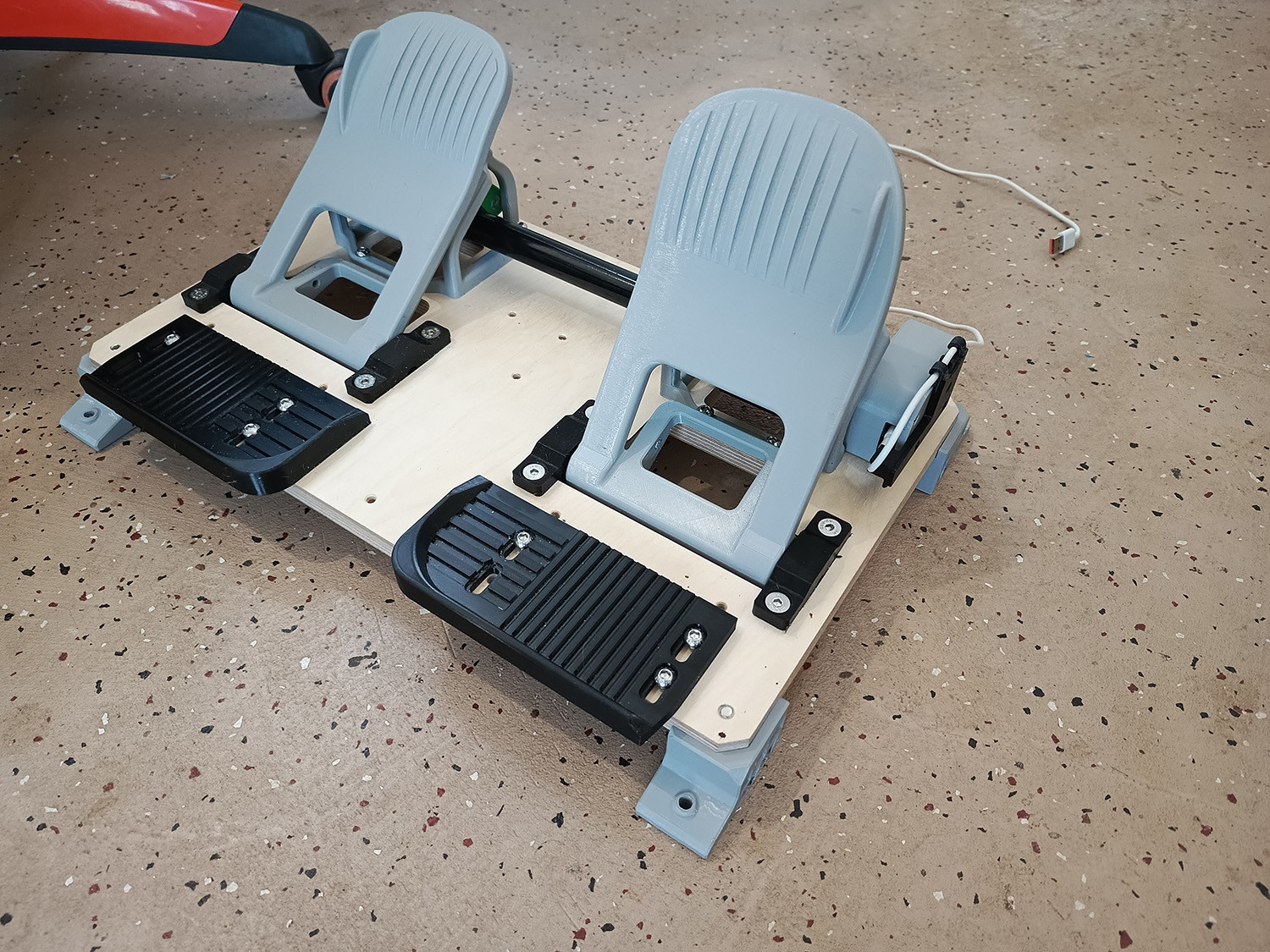 micro-flight Опубликовано: 15 октября Опубликовано: 15 октября Так как летать в симуляторах стал много, больше, чем раньше, захотелось чего-то новенького и более продвинутого. И такое я начал делать. Основная идея состоит в том, что мне нужны по прежнему точные педали, но более эргономичные, под все случаи симуляторной жизни. И для удобства реализации своей идеи, я решил основную часть всего сделать путём 3д печати, что позволило мне значительно сократить работы по металлу на станках. Педали проектировал по принципу учёта свойств напечатанного пластика, сразу с технологической подготовкой, то есть сразу расчитанными под печать, планировал получить педали более жесткие чем делал раньше. Буквально минут 20 назад собрал и проверил механику. Вот общий вид педалей. Фронтальный вид Вид сзади Вид сзади, педали в другом положении. Первые ощущения. Ход очень приятный, ноги как бы сами по себе ложатся как надо. Двигать легко и приятно. Можно легко управлять педалями даже на незакрепленной на полу пластине. То есть все движения замкнуты на себя и не вызывают отдачи в кресло или сдвига педалей. Педали можно также вплотную упирать в стену, движению площадок это не мешает. Нужно делать дальше, пока займусь эргономикой, на фанерной пластине видны заранее подгтовленные крепежные отверстия, буду экспериментировать с подпятниками. Немного данных. Педали расположены так, чтобы как можно ближе быть к естественному положению стопы, с осью вращения в районе пятки. Но при этом сохраняется возможность двигать пяткой и всей ногой вперед-назад. Ход педали 20°, как и на предыдущих устройствах. На датчик как и в предыдущих конструкциях планирую давать сигнал через редуктор, но появилась ещё одна новая возможность. Форма и ход передаточных рычагов такие, что на оси противохода уже возникает хорошая редукция и если нога проходит 20°, то на оси уже 84°, что даёт передаточное число уже больше чем 1:4 и можно обходиться по идее без отдельного редуктора. Поэтому думаю, что надо бы попробовать сразу оба варианта расположения двух датчиков и смотреть, как отличаются оси. Эффект такого изменения передаточного числа как бы добавочный бонус, я вообще-то больше занят был проблемой создания равномерного и симметричного движения. Если в первом случае получу на датчике вращение магнита в 84°, то редуктор уже расчитал на ход в 160°. Поэтому в будущем будет инересно посмотреть, будет ли разница более высокого разрешения с меньшим, может всплывут какие-то неравномерности или ещё что. По виду, собственно, это вся конструкция педалей как есть. Добавится небольшое число элементов, вес сейчас 2 кг 140 грамм, не думаю, что вес станет больше 2500 грамм. Опоры оси противохода интегральные: они одновременно держат ось, воспринимают все нагрузки и останавливают педаль в крайнем положении. И эта ажурная и легко печатаемая форма, оказалось невероятно жесткой. Что меня удвило, так как при проектировании был сосредоточен на компоновке в основном, а эта технологичность и жесткость приятный сюрприз. Педали проектировал сразу, как под напольное изготовление, так и с креплением на раму кокпита например. 3 1