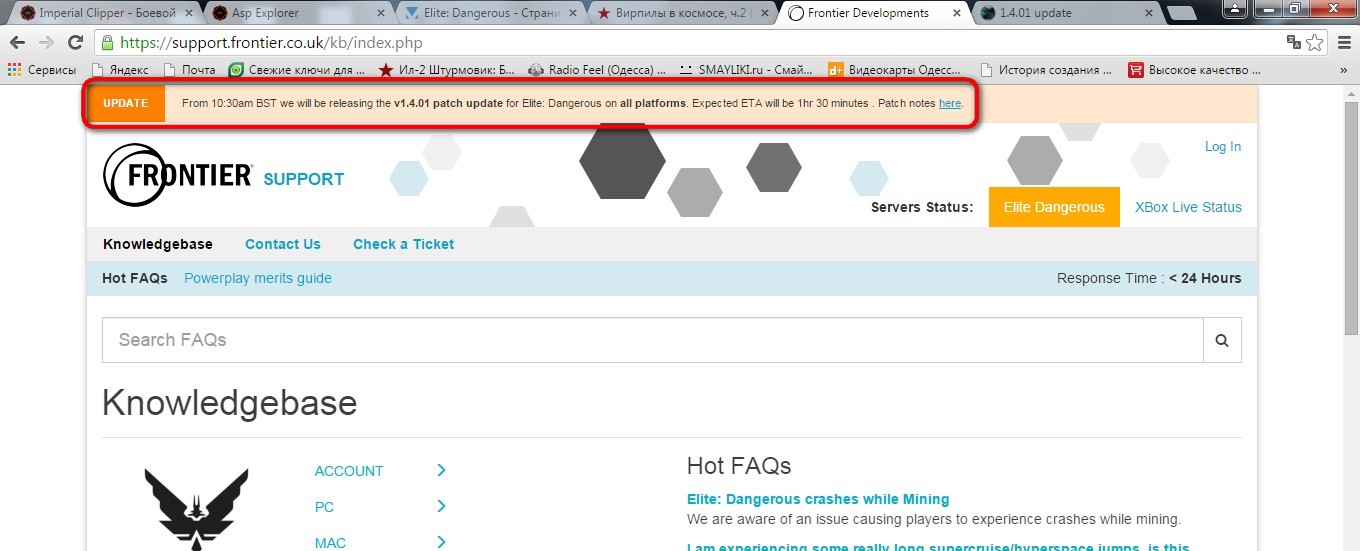 Voi Опубликовано: 21 октября 2015 Опубликовано: 21 октября 2015 Patch notes for 1.4.01. Для всех платформ:Улучшения в подборе соперников в CQCУлучшения перехватовНовые шаблоны миссийИсправили ситуацию, когда за один и тот же незаконный груз в одной системе накладывались несколько штрафовИсправили описание рангов необходимых для Federal Assault Ship и Federal GunshipВнесли пробные (рискованные) исправления в поведение горнодобывающего бункера с нераспределенной рудой (хз о чем речь, видимо глюки какие то с рефайнилкой и судя по описанию чего то они там опасаются)Исправления для Xbox OneИсправили настройки графикиИсправили ситуацию с многочисленными открытиями туманности KeplerТеперь поддерживается приложения для выгрузки (Upload App now supported хз о чем так как ящика нет )Обновлено руководство пользователяУдалены из базы неподдерживаемые языки (исправили проблемы с NXOE Preview)Внесли улучшения для упаковщика пакетов с целью уменьшить размер обновленийZac Утащено с elite-games.ru Интересно, что значит "новые шаблоны миссий". Это то самое обещанное мало-маленькое квестование или просто добавили новые, но такие же?