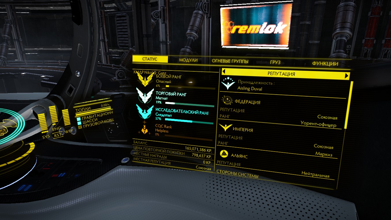 vasmann Опубликовано: 24 ноября 2015 Опубликовано: 24 ноября 2015 Облюбовал себе систему с низким уровнем безопасности, хожу по окружающим системам и беру квесты на убийство пиратов в целевой системе Дай наводку, наводку, наводочку :D. Ты кстати во фракции картавой бабы? Один раз меня командер перехватил ... я ушёл и дальше на станцию и тут опять он перехватывает - до станции я не дошёл - щита вообще не было, а после первого перехвата целостность корпуса на 56% была - короче завалил меня - вроде федералом был, а я Империи служу. Выхватил из гиперкруиза второй раз быстро - так что я думаю что на неписей не стоит огорчаться - механизм перехвата одинаковый для всех. Если командер хватает, и ты не готов дать отпор, то лучше прыгать не просто в гиперкосмос, а сразу в другую систему, с той системы обратно. Просто командер за тобой по "следу" прыгнет, будет тратить время, а второй след не уверен что найдет.