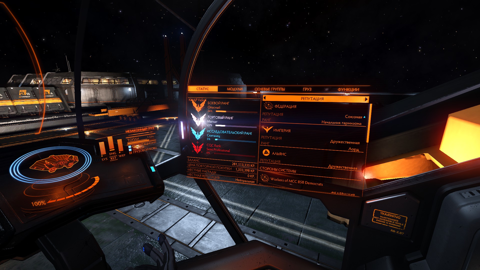 GANZ Опубликовано: 24 ноября 2015 Опубликовано: 24 ноября 2015 (изменено) Ну да .... красиво Пока горизонты брать не буду .... может сделаю себе подарок на Новый год ... на следующий ибо с нашим укладом в стране теперь реально планировать надо на будущее Ну такие миссии редкость, всего штуки 3 таких брал, в основном они для Элитного ранга. А так в основном это миссии от 800к до 1.5кк и по 3-5кк попадаются. Хорошо хоть попадаются по нескольку в одну систему-станцию. З.ы. как по ворожил кто, только что взял две миссии по 8кк в одну систему))) Да это я - позавидовал по доброму, от души вот тебе они и попали! Называется "А на фига летать за пиратами и стрелять - взял рабов, полчаса и ты с Стервятником!" Изменено 24 ноября 2015 пользователем GANZ
