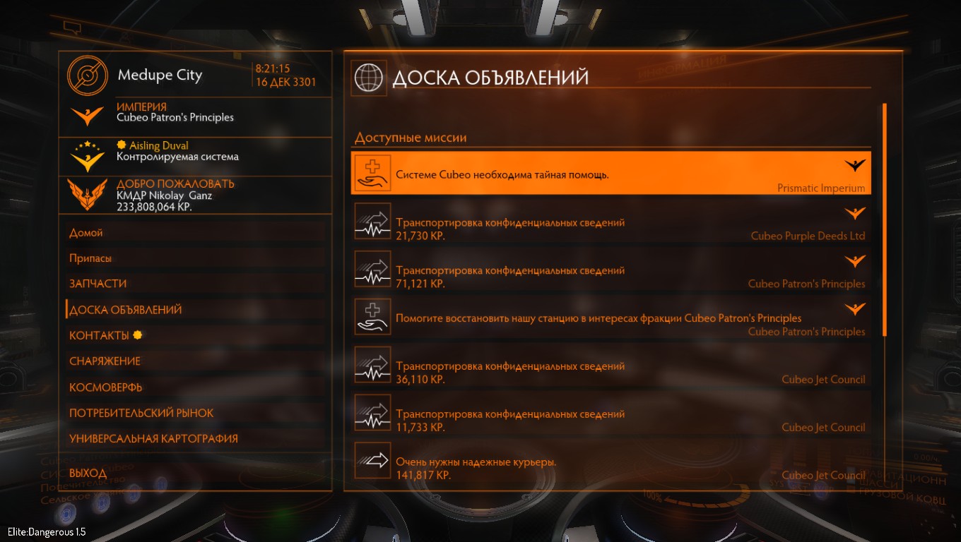 GANZ Опубликовано: 16 декабря 2015 Опубликовано: 16 декабря 2015 Здравия желаю командеры пилоты. Итак, тем кто зарабатывал на миссиях по доставке грузов с Takurua, Fehu и т.д. настал большой облом. Если раньше можно было за 2-5 млн. кредитов отвезти 5-15 тонн рабов, наркотиков, боевых стабилизаторов или военное оружие, то сейчас за 3 ляма я тащил 87 тонн рабов. Вообщем на ASP уже так не побарыжишь как раньше - трюм маловат. Нужен Питон или .... или Имперский Катер.Второе - когда из Takurua прыгал 270 световых лет, то после двух-трёх прыжков путь к системе обнулялся и приходилось маршрут прокладывать заново. Причём если до системы 270 световых, то заходя в карту звёздной системы и прокладывая маршрут к станции пишет что до станции 387 световых лет .... как жить в галактике с таким навигационным компьютером???? Больше пока ничего не пробовал. Да ... в столице Империи Айслинг Дюваль Имперский катер не продаётся