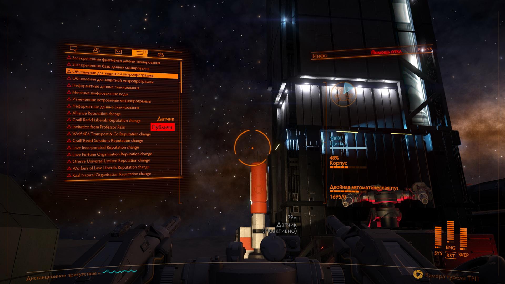 Гость deleted@105144 Опубликовано: 3 июля 2016 Опубликовано: 3 июля 2016 Да, насчет слабых сигналов: в английской версии раньше это было weak signal source, сейчас - degraded emission detected. Мне они сейчас тоже в основном попадаются. Полечу снова на край пузыря, там часто были encoded и еще какие-то, короче, в которых конфетки для инженеров бывают. Подскажите. У меня анжанер посит в чертеже кучу всего, что есть, а нет у меня сигнала, который ловится только в поселениях... Разведданные шифрованные какие то. Это сканировать надо корабли в поселениях у посадочных площадок? Подозреваю, это тоже, что и security firmware patch. Я его заработал в заданиях, перед этим долго катался, сканировал пару маяков, ничего не находил.