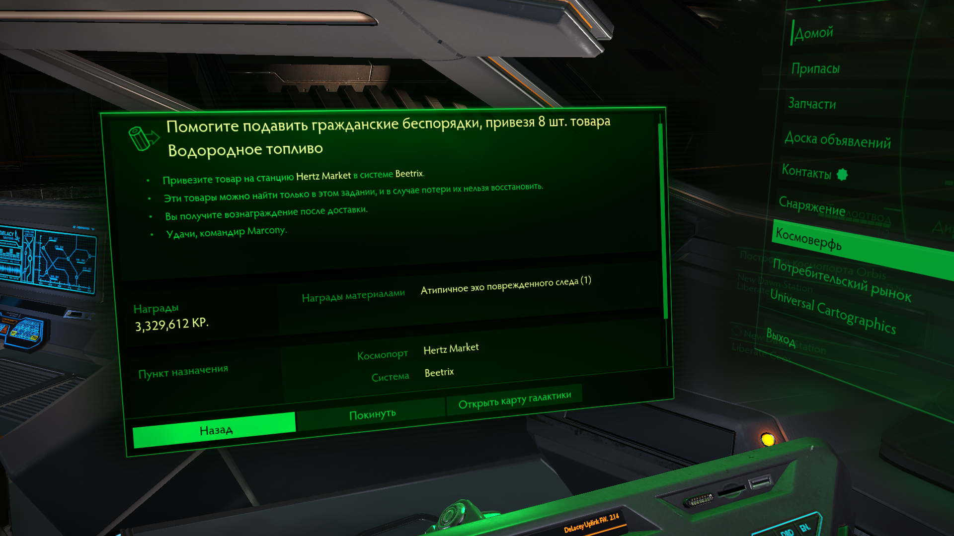 =WAR=Serge-99 Опубликовано: 5 июля 2016 Опубликовано: 5 июля 2016 (изменено) Это уже старые новости. Профита от того, что ты сдашь их именно в лабораторию, особого не будет. Ну, во всяком случае, я так думаю. Хотя может разрабы как-то и учитывают, что именно в этом маркете было продано сколько-то метасплавов. Если хочешь дороже продать - пробей на EDDB. Там с десяток систем было, где их можно сплавить дороже, чем за 90 тысяч... Вчера прилетел на станцию, смотрю, миссия есть, за которую дают нужный товар для апгрейда FSD, но корабль большой. Пока искал, чего лишнего из трюма скинуть, покупал и перефичивал кобру, миссия исчезла с доски объявлений. Так что есть смысл подготовить такой кораблик заранее, чтобы потом время не терять... А вообще, добрался наконец до Джейсон Мемориал. Цены на корабли приятные. Есть 29 видов кораблей. Ранги требуются. Федеральные фракции присутствуют аж в количестве 3х штук. Имперских фракций нет. Джейсон Мемориал.... Это где прочитать про неё? И про инженеров. Там есть ещё два открытых у меня.... Один требует внеземное, а второй требует не пойму что..... 500К чего-то... Ваучеры требовал оружейник... а этот не пойму что требует. Изменено 5 июля 2016 пользователем =WAR=Serge-99