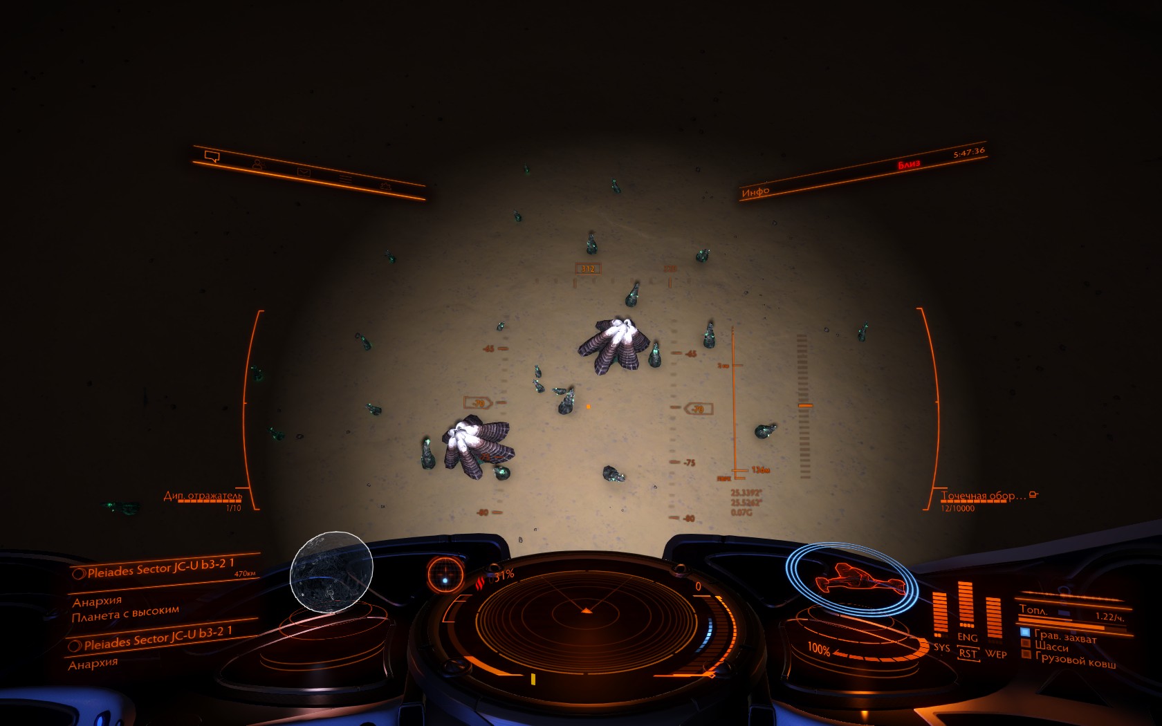 GANZ Опубликовано: 5 июля 2016 Опубликовано: 5 июля 2016 Застрял я между сломанных рогов этих ракушек блин. Никак не смог выбраться ... ну, самоуничтожение. Думал на корабле сразу появлюсь .... и появился в корабле на орбите в 90 км. от координат барнаклов. "щас спущюсь и и всё соберу заново" - подумал я! Спускаюсь, нахожу их, а на планету высадится не могу - тачанка то одна была Щас к тётке за модернизацией маневровых и гипер-двигателя лечу. На борту четыре метасплава. Ей один нужен .... ещё 350 световых Я нашёл там 5 штук, а у тебя сколько получилось? Подобрал четыре штуки без релогина. Самое ценное по мимо метасплавов там есть ванадий. Он нужен для топки FSD - один раз выручило капитально. Если бы не один кусочек ванадия, то пришлось бы крыс вызывать.
