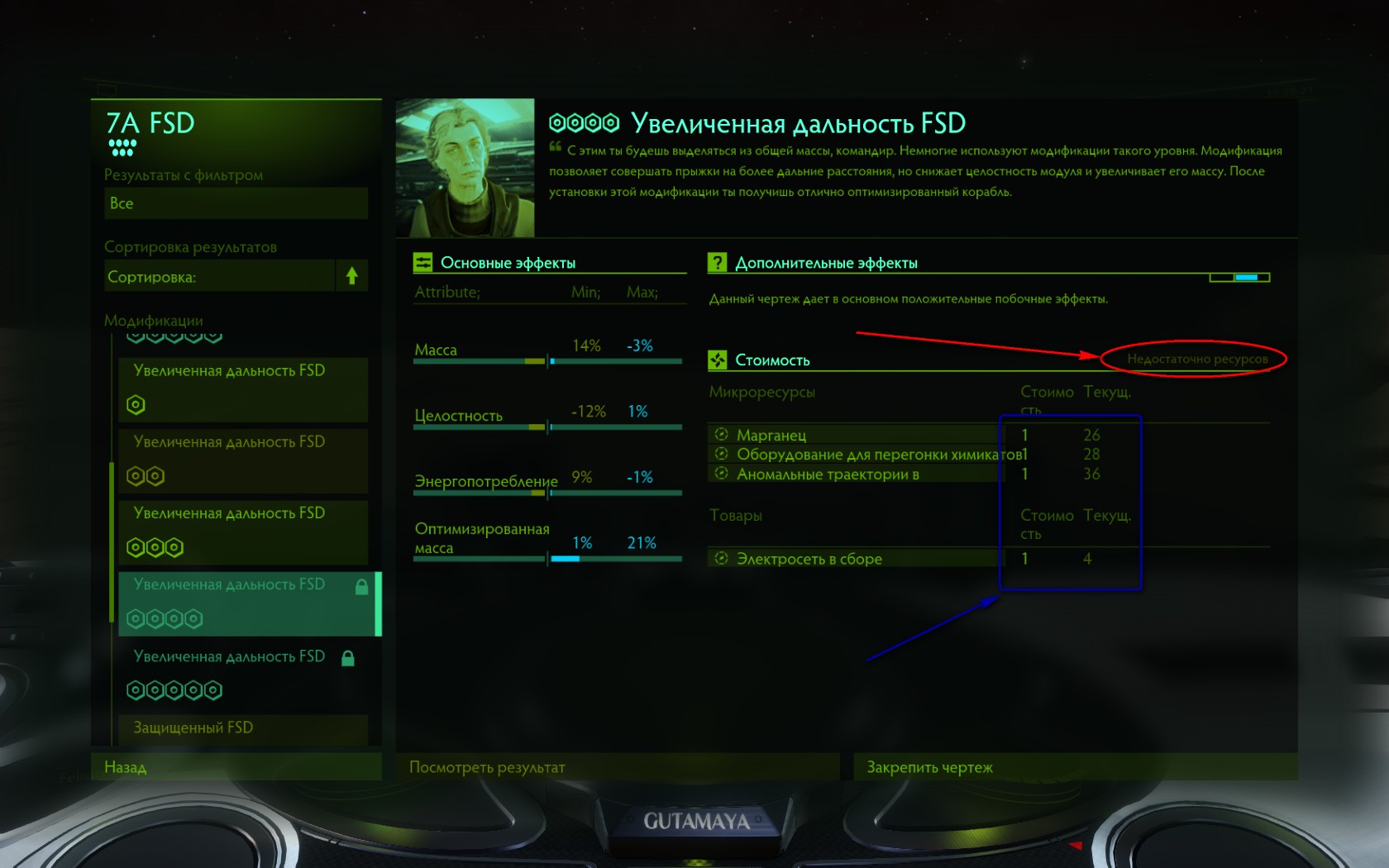 GANZ Опубликовано: 10 августа 2016 Опубликовано: 10 августа 2016 (изменено) Поздравляю Вася! Отличный корабль купил. Я Клипер продал и в Элите у меня всего один корабль - Катер.Парни - пытаюсь 4-ый грейд для ФСД сделать - не даёт сцука. Всё вроде собрал - пишет "не достаточно ресурсов". Скрин прилагаю - подскажите что не так, бо я не понимаю ..... красным выделил не понятки, синим то что есть в наличии и понимаю что хватает мне на апгрейд - чё не так? Изменено 10 августа 2016 пользователем GANZ