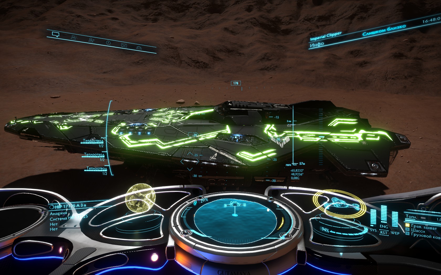 ROSS_Skipirich Опубликовано: 22 октября 2017 Опубликовано: 22 октября 2017 Сейчас такой случай со мной приключился. Прилетел в Шинрарту. Стыкуюсь с станцией Джеймсон Мемориал. Даёт добро и назначает посадочную площадку №40. Прохожу купроприёмник и иду к площадке №40 .... а там нагло посиживает пассажировоз. Смотрю на время - для стыковки ещё 9 минут. Ну думаю, щас отстыкуется и я сяду ... жду .... жду .... начинаю нервничать и жду .... а он даже не телится. Дай думаю попробую отменю стыковку и ещё раз запрос на стыковку сделаю. Только отменил как тут же мне штраф впаяли за незаконное проникновение. Короче прикольно. Ещё пару скринов конды в интересной раскраске. Такие первый раз вижу в живую. Так это наверное та же белуха, которая пыталась занять мою площадку для АСПа, на позапрошлой странице А вобще да, именно в ДжеймсонМемориал какой то глюк похоже, дисп дает посадку на занятую площадку, я уж дважды на эту белуху натыкался При чем второй раз я начал игру в анраре мемориала, сразу внутри этой белухи, смотрю, понять не могу, что то у меня в кокпите лишние запчасти появились, захожу в меню снаряжения, а там на внешнем виде гибрид моей конды с этой белухой Стартовать в таком виде не рискнул, перезашел еще раз, уже без проблем И да, на раскрасочку, я в конечном итоге тоже раззорился, а то уж больно мрачно выглядела черная конда в черном космосе К стати, повреждения на удареной об землю конде (не расчитал с гравитацией и довольно сильно приложил корабль об планету) выглядят прикольно, не замечал такого раньше, это в 2.4 повреждения что ли ввели?