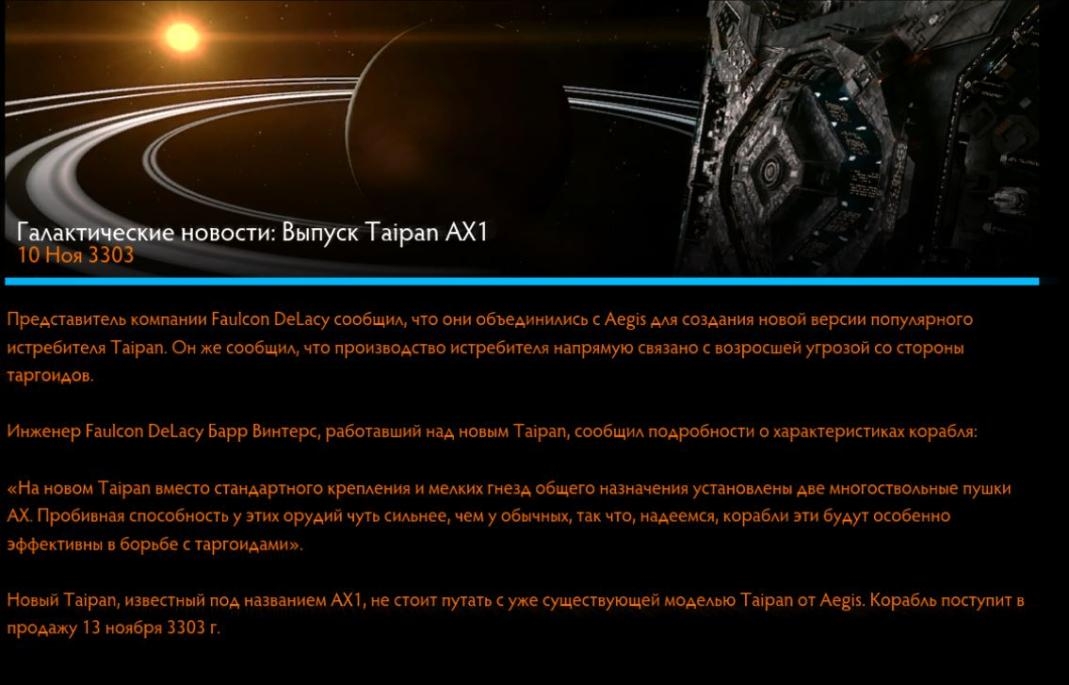 Voi Опубликовано: 6 ноября 2017 Опубликовано: 6 ноября 2017 (изменено) А разве кэпитал-шипы не по этой технологии прыгают? Насколько знаю, большие корабли используют приводы 2б-типа - устаревшей технологии, но пока безальтернативной для гигантского класса судов. Путешествие между точками входа и выхода, в зависимости от расстояния, может занимать значительное время, иногда недели. Этот тип привода, так же, может использовать "недокументированные червоточины" в пространстве для прыжков на сверхдальние расстояния, поговаривают, что даже в интергалактических масштабах. Дальность прыжка пропорциональна размерам привода и обратно пропорциональна массе судна. Топливом для них служит тоже водород, но есть военные модификации, впрочем, имеющие и свои недостатки. Что касаемо таргонских технологий, то ходили слухи, что высокоэнергетическое топливо quirium, используемое для приводов 1-го типа, было разработано именно на основе захваченных кораблей чужих. Однако, с распадом Галактического Кооператива (GalCop) в 3172 году, формула топлива была утеряна. 3й тип, известный как FSD, так же был создан на основе таргонских технологий, полученных Альянсом в наследство от ГалКопа. ЗЫ: Тоже слухи - мол "Сириус корп" ведет разработки по развитию 3-го типа привода (3++ или 4 тип), основанные на технологии, полученные от поглощения компании "Метадрайв". Изменено 6 ноября 2017 пользователем Voi 2