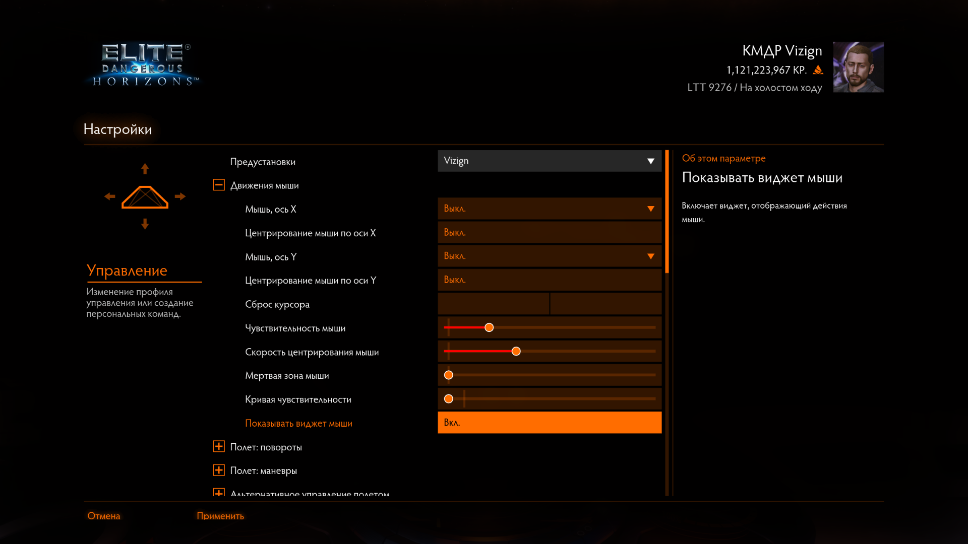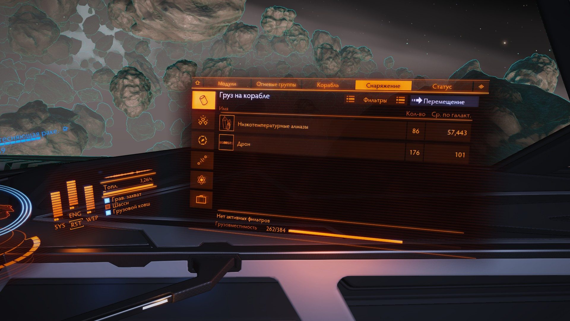 RRR_39 Опубликовано: 14 июня 2020 Опубликовано: 14 июня 2020 (изменено) 10 часов назад, ross_Rasim сказал: Нашел как включить точку по центру экрана, тут вроде спрашивали про нее. Опция "Показывать виджет мыши". Когда включается режим обзора (вращения головой) центральная точка пропадает. Проблема обзора с помощью трекинга в том, что режим обзора включен всегда и выключить его невозможно. Т.е. точки нет даже если включена данная опция. Опять копаю алмазы, теперь новым методом вытесняющими ракетами. Глубинные залежи сильно апнули, в итоге с одной такой залежи можно получить 20 или более алмазов. У меня было 28 точно. Астероид с двумя глубинными залежами дает около 50 алмазов, с тремя более 60. Т.е. с любого астероида с глубинными залежами можно получить больше чем со взрыва астероида. Ну и астероиды с глубинными залежами встречаются чаще чем астероиды с ядром. Единственный существенный минус, вытесняющие ракеты быстро кончаются. На корвет надо ставить хотя бы две установки второго уровня что бы накопать 378тонн. Изменено 14 июня 2020 пользователем RRR_39