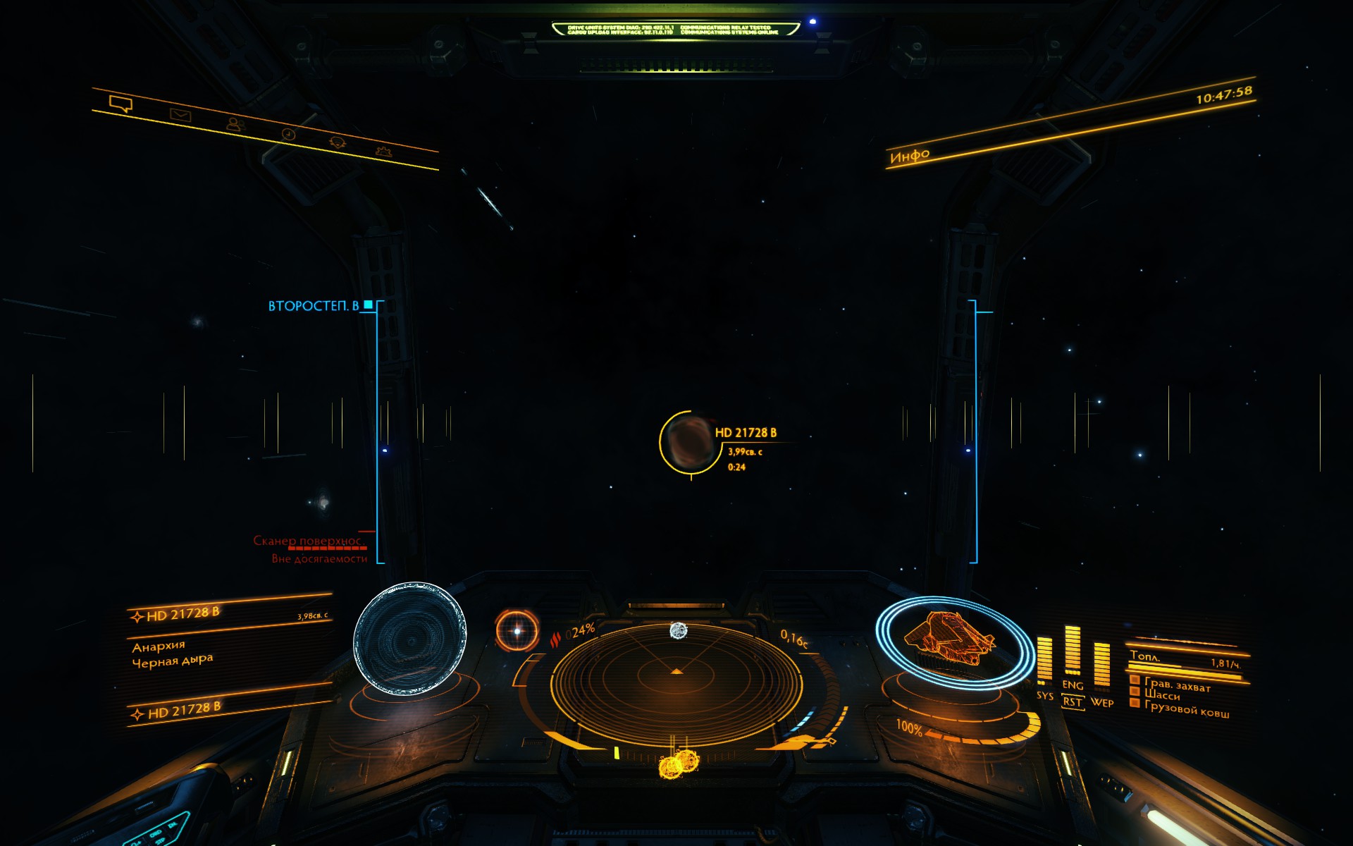 RRR_39 Опубликовано: 6 апреля 2021 Опубликовано: 6 апреля 2021 Полетал на Анаконде по системе Chati. Карту системы взял из Горизонтов. Скрытый текст Планеты в тренировке не подписаны, приходилось лететь на глаз. Можно состыковаться со станцией, но высадиться на ней нельзя. Хотя лифты видно, в Горизонтах проход туда закрыт. Скрытый текст По освещению, разница видна не вооруженным глазом. Настроки графики и в Одиссее и в Горизонтах одинаковые - средние. В Одиссее космос явно темнее. Станция одна и та же. Скрытый текст В Гоизонтах примерно 200св.сек, в Одиссее больше, думаю 400-500 Скрытый текст 13тыс.св.сек. Скрытый текст