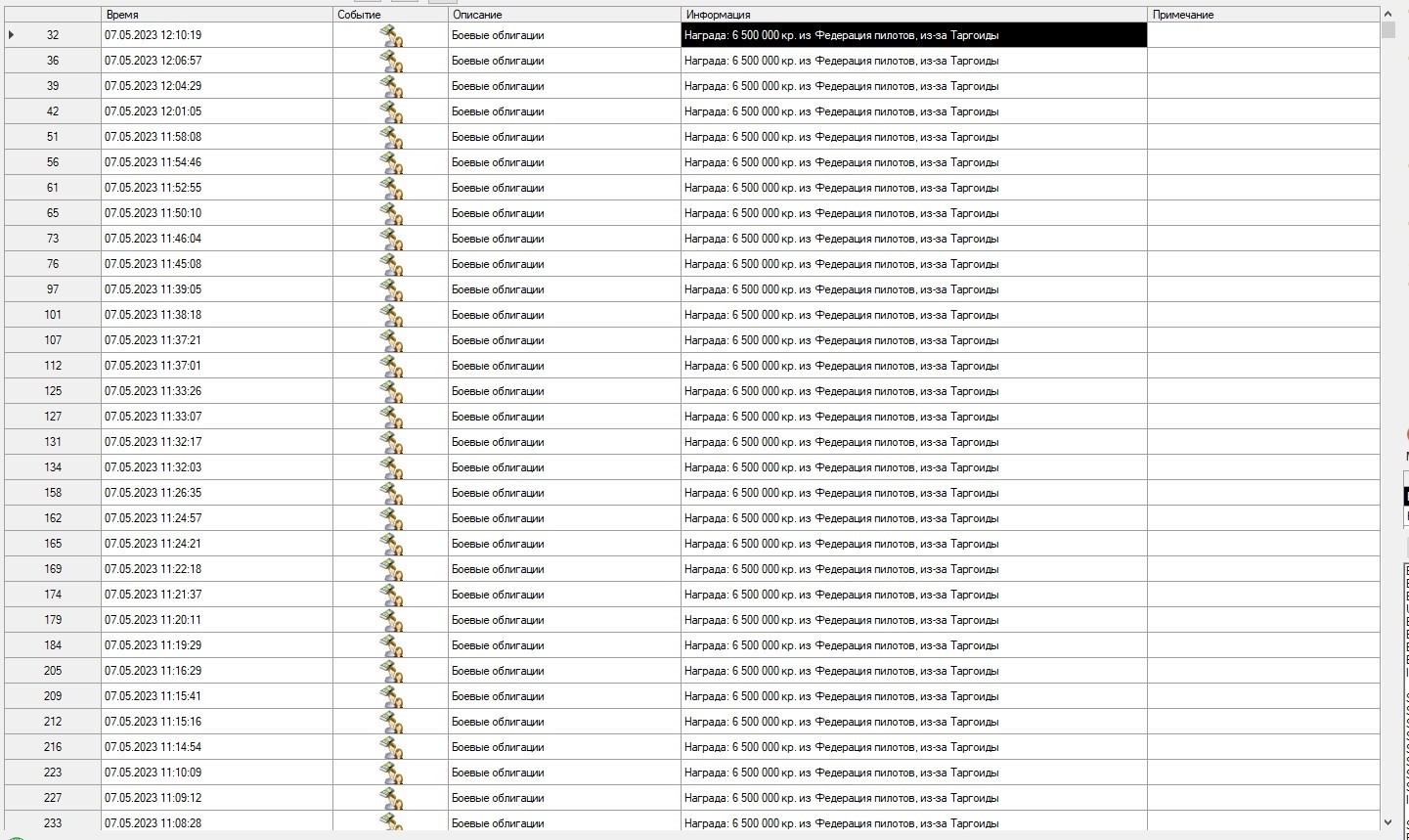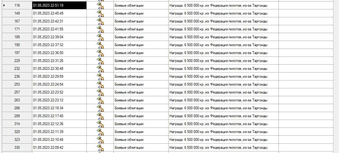 RRR_39 Опубликовано: 7 мая 2023 Опубликовано: 7 мая 2023 Сегодня с утра был настоящий сенокос. 24 Циклопа погибли в атаке на поселение. Потом прилетели 2 Гидры, плюс продолжали прибывать Циклопы, которых я отстреливал пока не кончились снаряды. С Гидрами не связывался. В итоге в течении 1 часа погибло 32 Циклопа, всего вместе с начальной фазой боя где то 1ч10м. По деньгам получилось 208 миллионов + 20 миллионов за отбитие атаки на базу, итого 228 миллионов за час, плюс какая то мелочь за таргоидскую мелочь, минус мелочь за ремонт и пополнение теплоотводов и минус 8 миллионов за восстановление корабля. Хотя конечно не всегда бывает такое изобилие. Если бы приперся Василиск или Медуза, то за них конечно заплатили бы больше, но снарядов на них ушло бы еще больше. За Васю платят в 3 раза больше чем за Циклопа, а снарядов на него уходит раз в 10 больше. Но все равно получается хороший способ заработка. Сейчас посмотрел, у меня с начала войны с таргами, ваучеров скопилось на 4 с лишним миллиарда. При том что к такому быстрому убийству Циклопов я пришел только сейчас, когда попробовал поставить 5 дробовиков на Крайт. Раньше биться за поселок приходилось раза в 2 дольше.