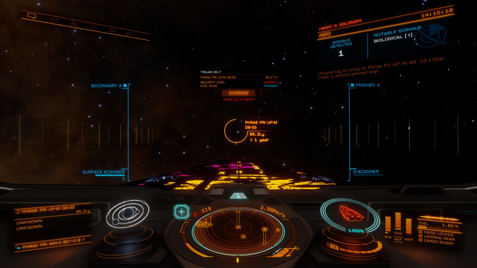HappyRogger Опубликовано: 25 июля 2024 Опубликовано: 25 июля 2024 18 часов назад, BRZ513 сказал: Топливо не тратишь? Почти! 🙂 Топливо трачу, но его хватало так сильно впритык, что синяя полоска на шкале топлива, которая показывает сколько его потратится не отобразилась. Космо-компуктер посчитал что его не хватит на прыжок и не отобразил, а по факту хватило тютелька в тютельку. 1