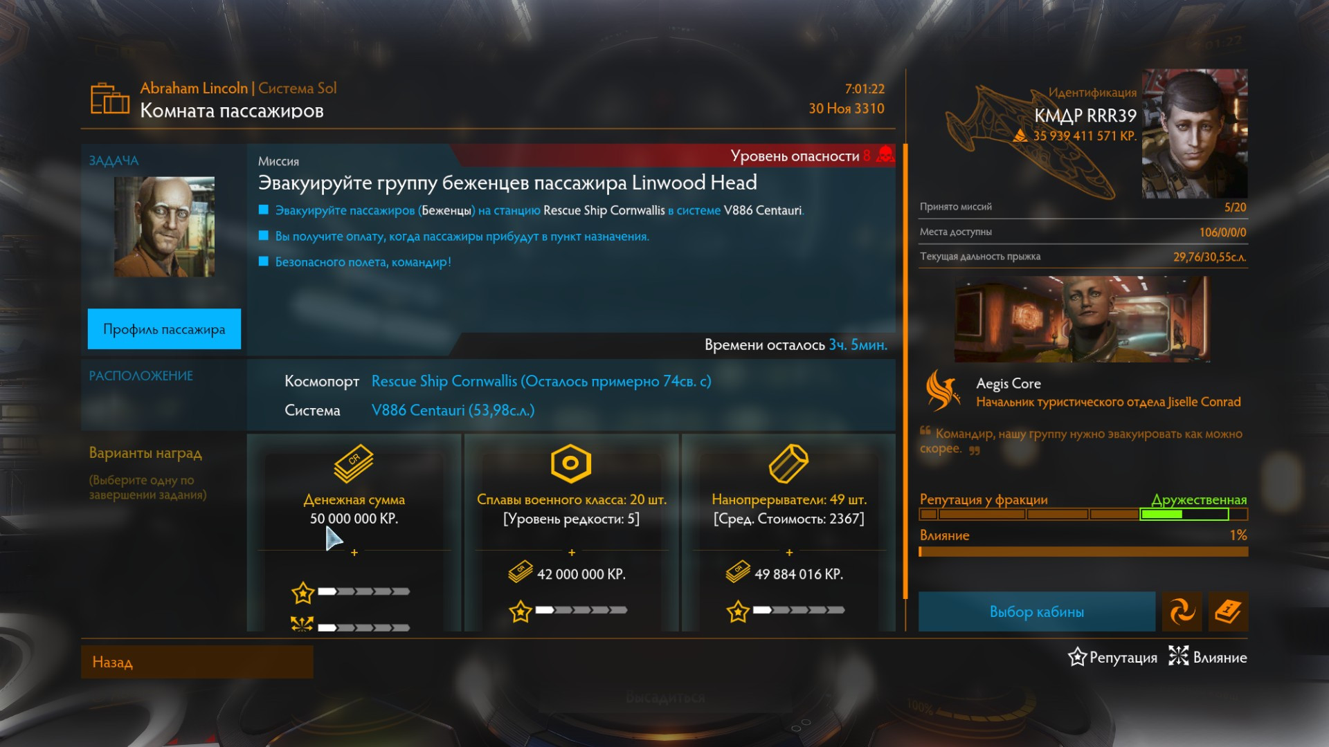 RRR_39 Опубликовано: 30 ноября 2024 Опубликовано: 30 ноября 2024 (изменено) 32 минуты назад, BRZ513 сказал: Чёт я не понял... Я снарядил эвакуационную конду, прилетел в Сол, а оно никто уезжать не собирается! Все сидят на жопах ровно! Обидно даже... Хотел людей покатать Сваливают только в путь, ни каких денег не жалеют. Такие контракты конечно не каждый рейс выпадают, но на 6 рейсов это уже второй такой. Еще были несколько контрактов на 10-15 миллионов. Выпадают с той же периодичностью как и на 50 лямов. Судя по всему основная масса контрактов 0,5-2 миллиона, и иногда выпадает более крупный контракт 5-50 миллионов. Правда попадаются нехорошие люди, которые в розыске. Из за одного такого, меня в розыск объявили, пришлось лететь штраф 250 кредитов платить. Еще 5 копеек по кораблю. Нужен быстрый корабль, лучше всего подходит Катер. 168 пассажиров 500м/с на форсаже. При прыжке из Солнечной системе, 100% будет перехват Охотником, и получение от него торпеды перезагружающей ФСД. После перехвата, запускаешь теплоотвод, и спамишь форсаж. Ждешь пока перезагрузится ФСД после торпеды. Догнать Катер он не успевает, хотя часто перед самым прыжком запускает еще одну торпеду, но она уже не успевает попасть. Если корабль не скоростной, то уйти вряд ли получится, тут лучше сразу делать релог. Изменено 30 ноября 2024 пользователем RRR_39 1