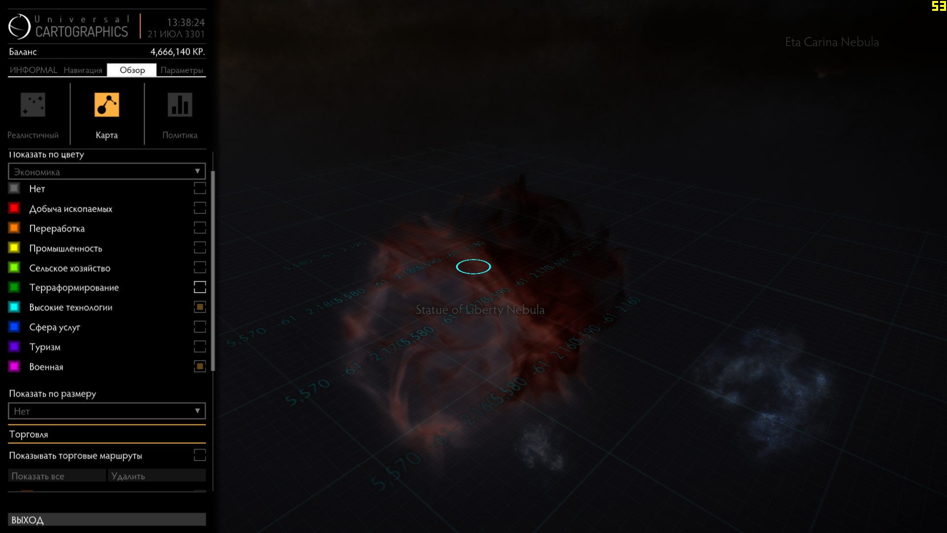 1CGS FF*VaSoK*22 Опубликовано: 21 июля 2015 1CGS Опубликовано: 21 июля 2015 Совершив 200 прыжков добрался до первой основной цели путешествия туманности Statue of Liberty. Двигаем к следующей цели - туманности Eta Carina. 3