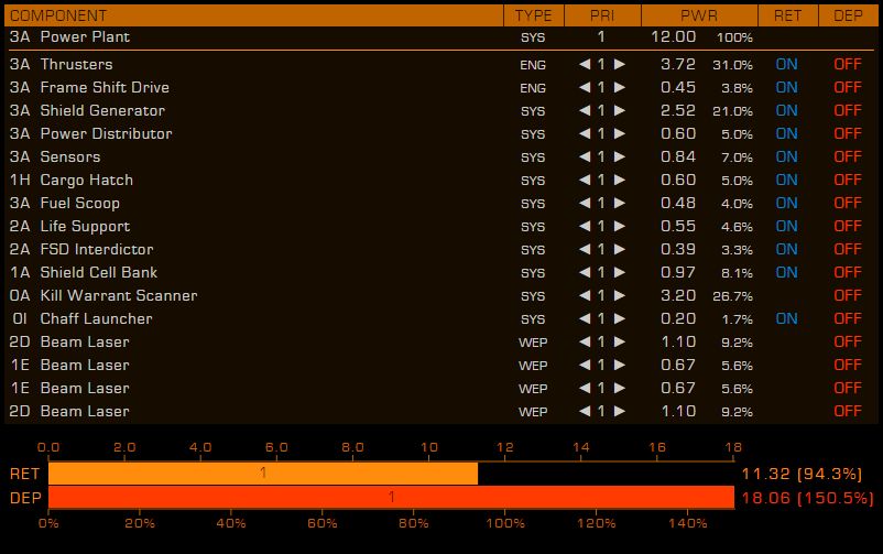 Потом уже на базе стал разбираться. Оказалось то, что фигли Вайпер - на него чуть что навесишь, он сразу все вырубает. Ну подобрал себе комплект так, чтобы гипердрайв и фуелскоп автоматом при расчехлении выключались :))) Но даже при этом пришлось поснимать почти все оборудование А-класса и поставить скромненькое, но легкое "D"